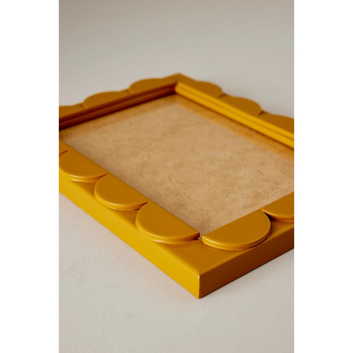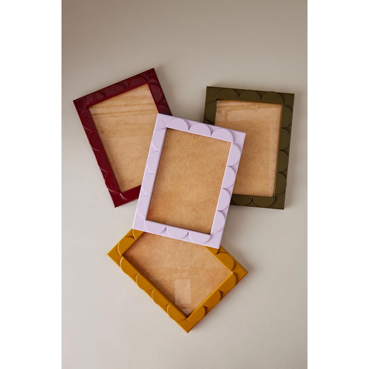 I love this frame for its playful scalloped edge, which instantly adds a touch of charm to any space. It works particularly well in eclectic or bohemian interiors, where its bold colour and fun shape can complement other patterned or textured pieces. For practical styling, consider grouping several frames of different sizes on a gallery wall to create visual interest. It’s also great for displaying favourite family photos or artwork in a living room or hallway, adding personality without overpowering the overall decor. Keep it simple by pairing it with neutral or warm-toned surroundings to let the frame's colour and design stand out.