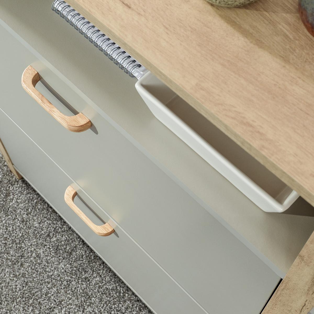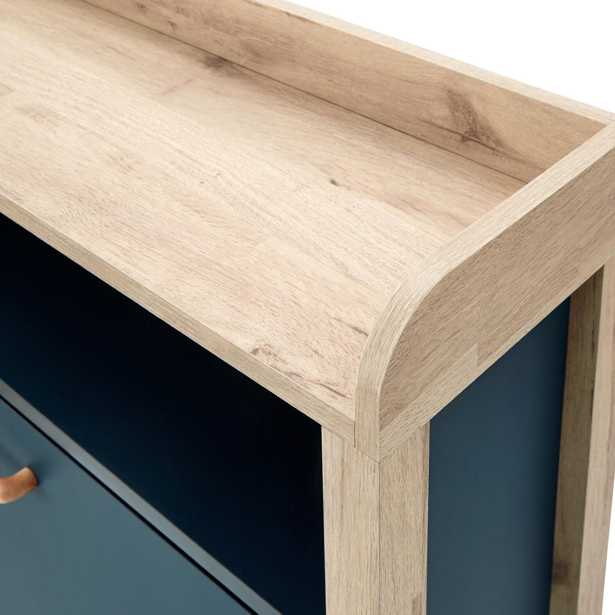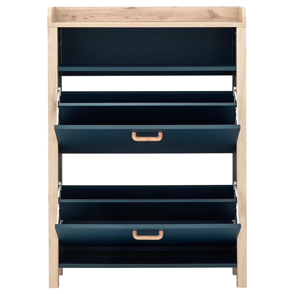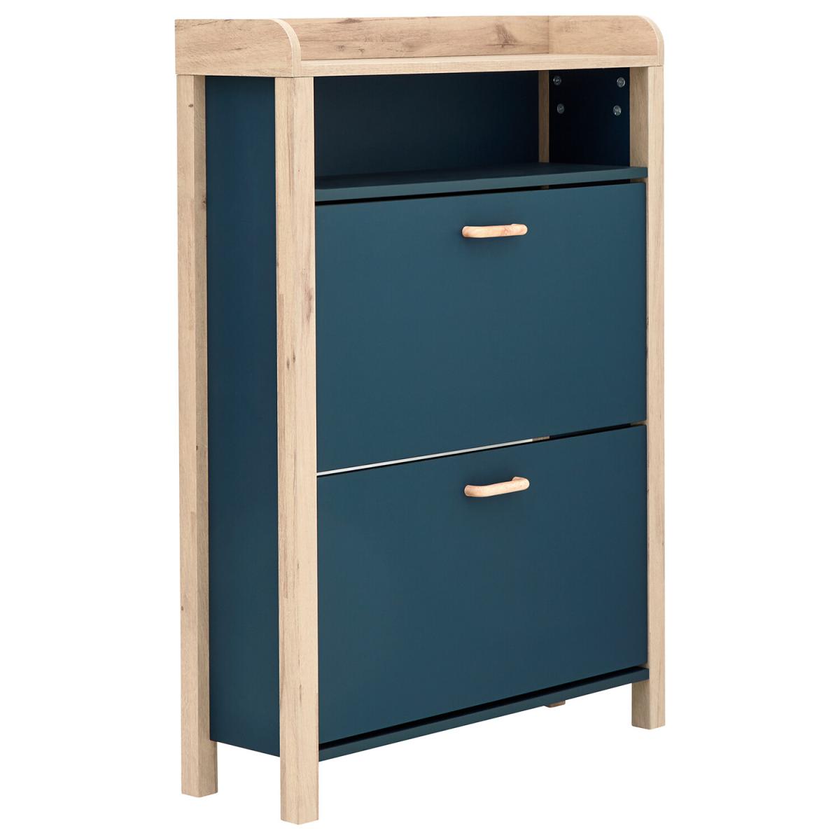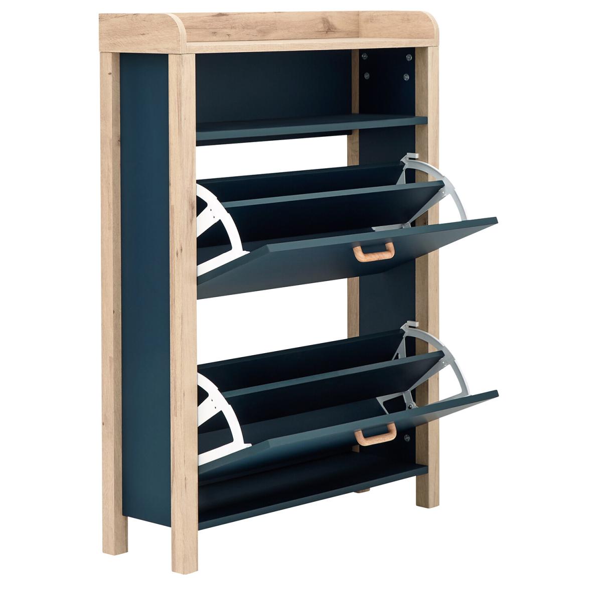 If you're looking for a hallway organisation solution that makes a stylish contemporary furnishing statement, the Berwich OT Shoe Cabinet is the smart choice. The cabinet's panels are finished in a choice of dark and light neutrals and completed by a light oak-effect frame, legs and solid wood handles that add warmth and character. The full-width open shelf is the ideal resting place for gloves, keys and outdoor accessories, while twin pull-down shoe compartments can each accommodate six pairs of standard size (UK10) Men's shoes - Twelve pairs in all. A well-designed furnishing piece with a practical purpose.