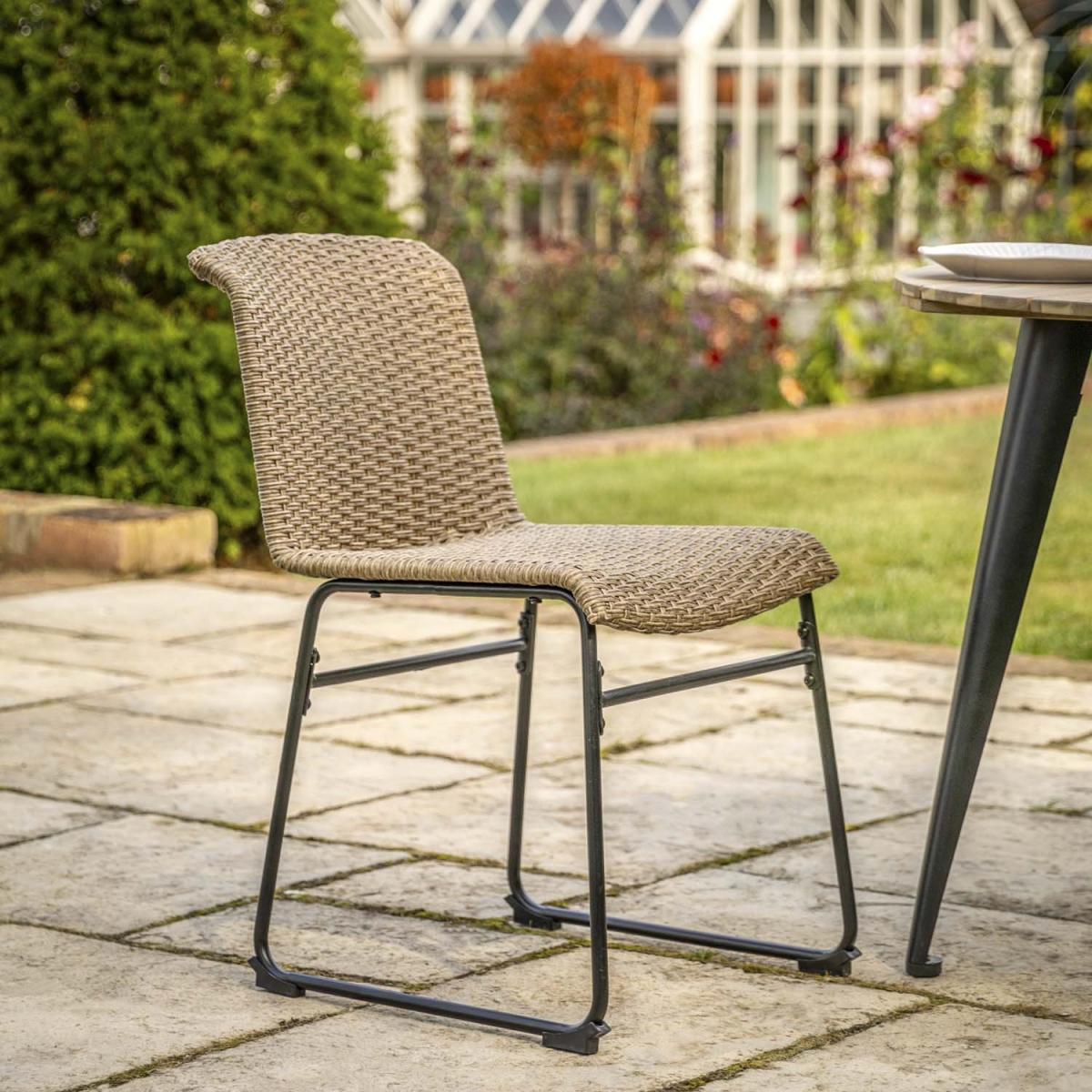 The Besos Set of 2 Dining Chairs is designed to complement a variety of outdoor dining tables. With a simple powder coated meatal frame and woven rattan seat and back, these chairs will be a great addition to your al fresco dining experience.