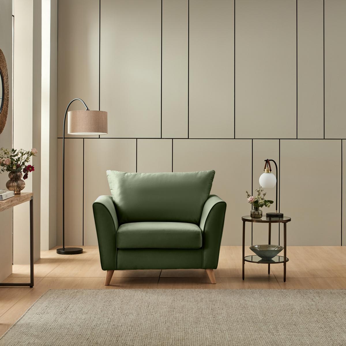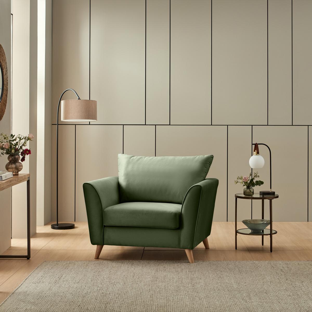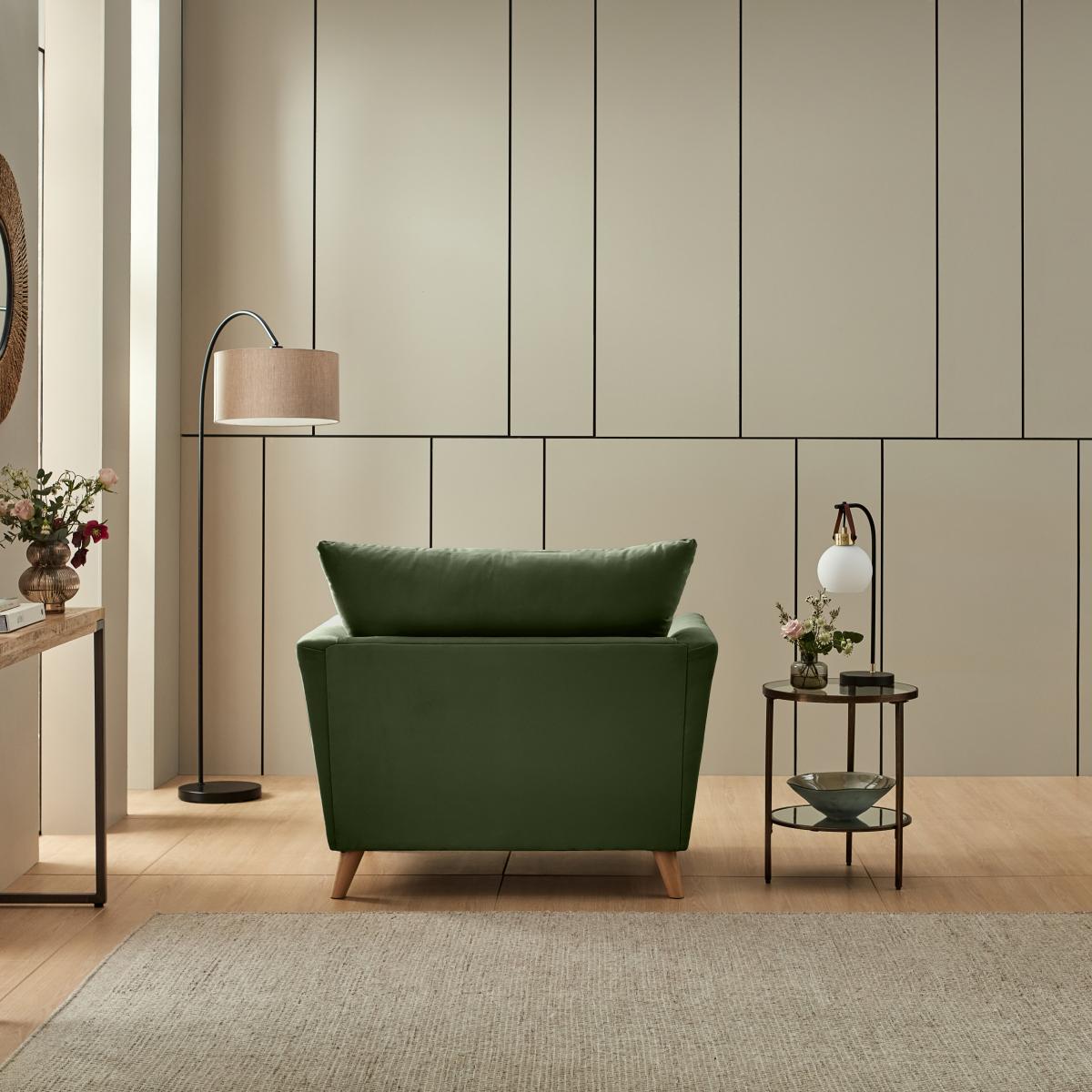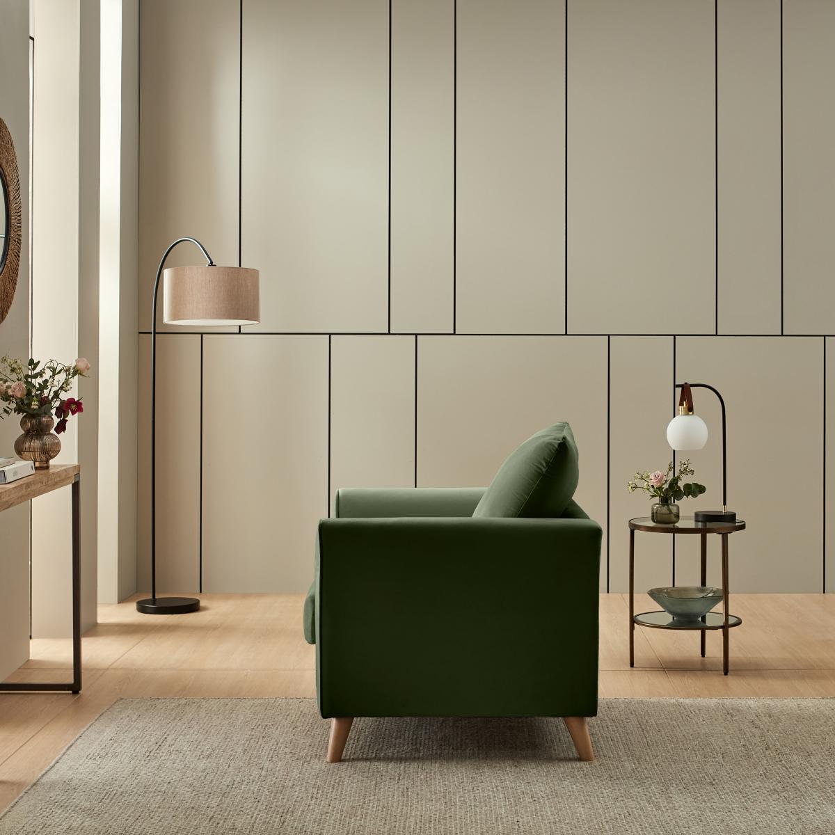 I’m a fan of the Bess chair for its clean, mid-century lines and soft velvet finish - the light olive tone brings a fresh yet grounded feel to a room. It sits equally well in a contemporary living area, a Scandi-inspired snug or even a relaxed home office, thanks to its neutral hue that still packs personality. For styling, keep the palette muted around it - think warm timber floors, soft greys or off-whites on walls - then layer in brass or matte-black accents via a slim floor lamp and a simple side table. A single patterned cushion or a textured throw will add interest without overpowering the chair’s elegant shape, and a low-pile rug will anchor the space underfoot.