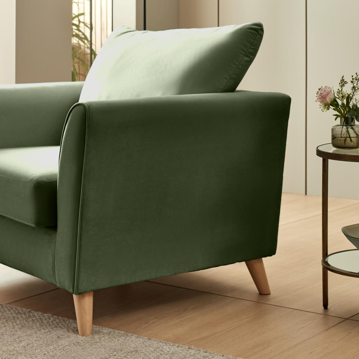 * Upholstered Armchair* Soft Velvet Fabric* Flared Arms Designed with both style and relaxation in mind, this armchair is a must-have addition to any modern living space. Upholstered in opulent velvet fabric and available in a variety of stunning colours, it effortlessly complements any home decor. Sink into its plush foam filled seat and lean back against the cosy scatter back cushions, enveloped in a sense of tranquillity and ease.