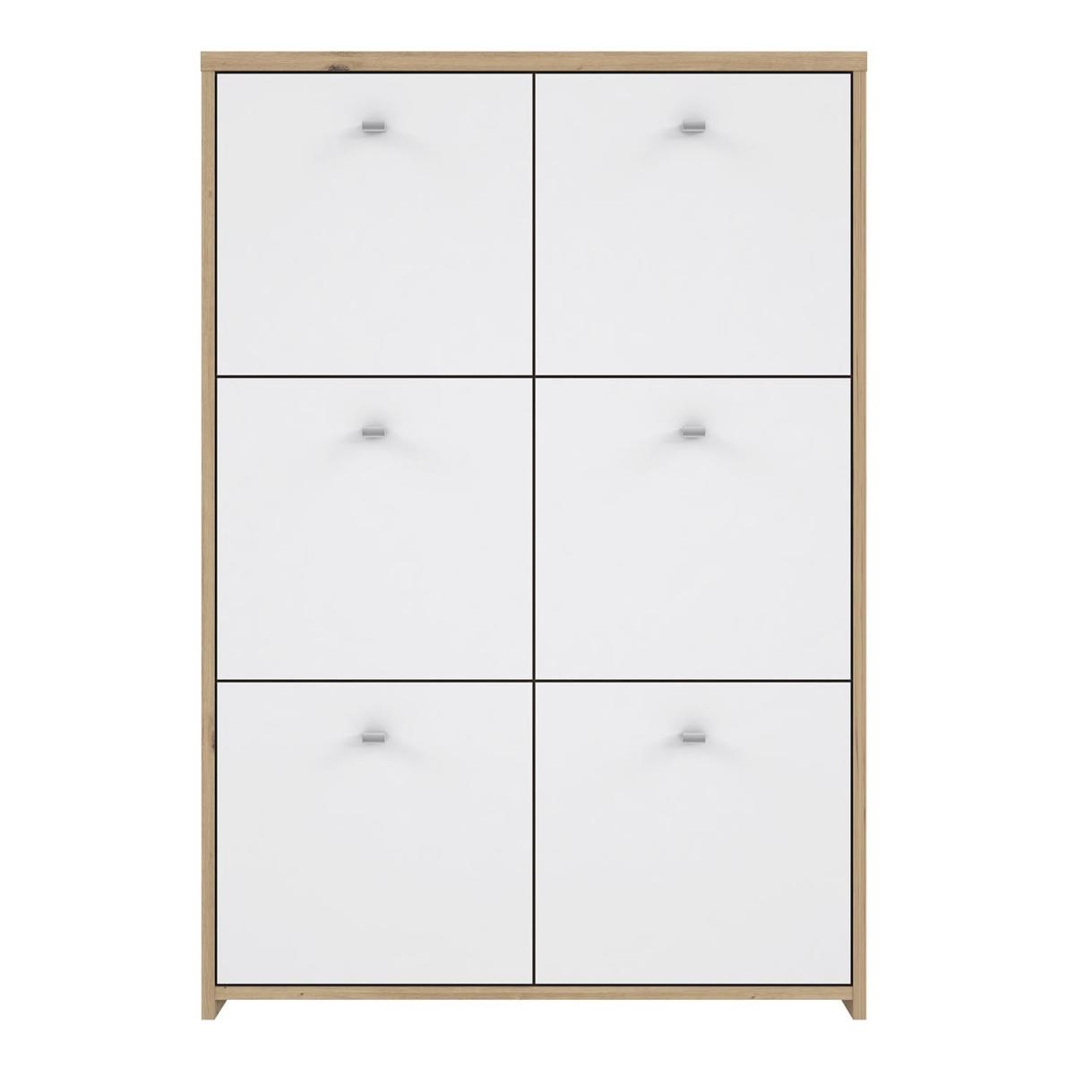 I really like this six-door chest for its clean lines and mix of white fronts with a light oak frame - it brings just the right balance of warmth and brightness. It’s ideal in a contemporary or Scandi-style living area or hallway where you need plenty of hidden storage without the doors shouting for attention. Styling it is straightforward: keep the top surface clutter-free with one or two statement items - a slender lamp, a small plant and a stack of books work well - and let the cabinet’s simple design sit quietly in the background. Inside, use matching fabric boxes or low-profile organisers to make the most of each compartment and maintain that calm, orderly look.