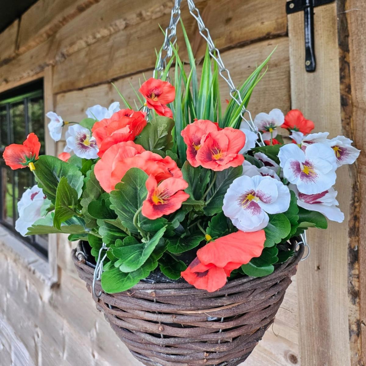 Add a pop of colour and joy to your home or business with our Best Artificial Pansy Flower Hanging Basket! This quirky and delightful basket features multi coloured pansy flowers, green leaves, and tall grass. They arrive fully assembled in a sturdy wicker basket with a galvanised hanging chain so that they are ready for display straight from the box. They are guaranteed to bring a smile to your face! Add a pop of colour and joy to your home or business with our Best Artificial Pansy Flower Hanging Basket! This quirky and delightful basket features multi coloured pansy flowers, green leaves, and tall grass. They arrive fully assembled in a sturdy wicker basket with a galvanised hanging chain so that they are ready for display straight from the box. They are guaranteed to bring a smile to your face!