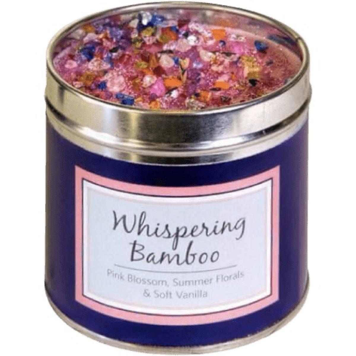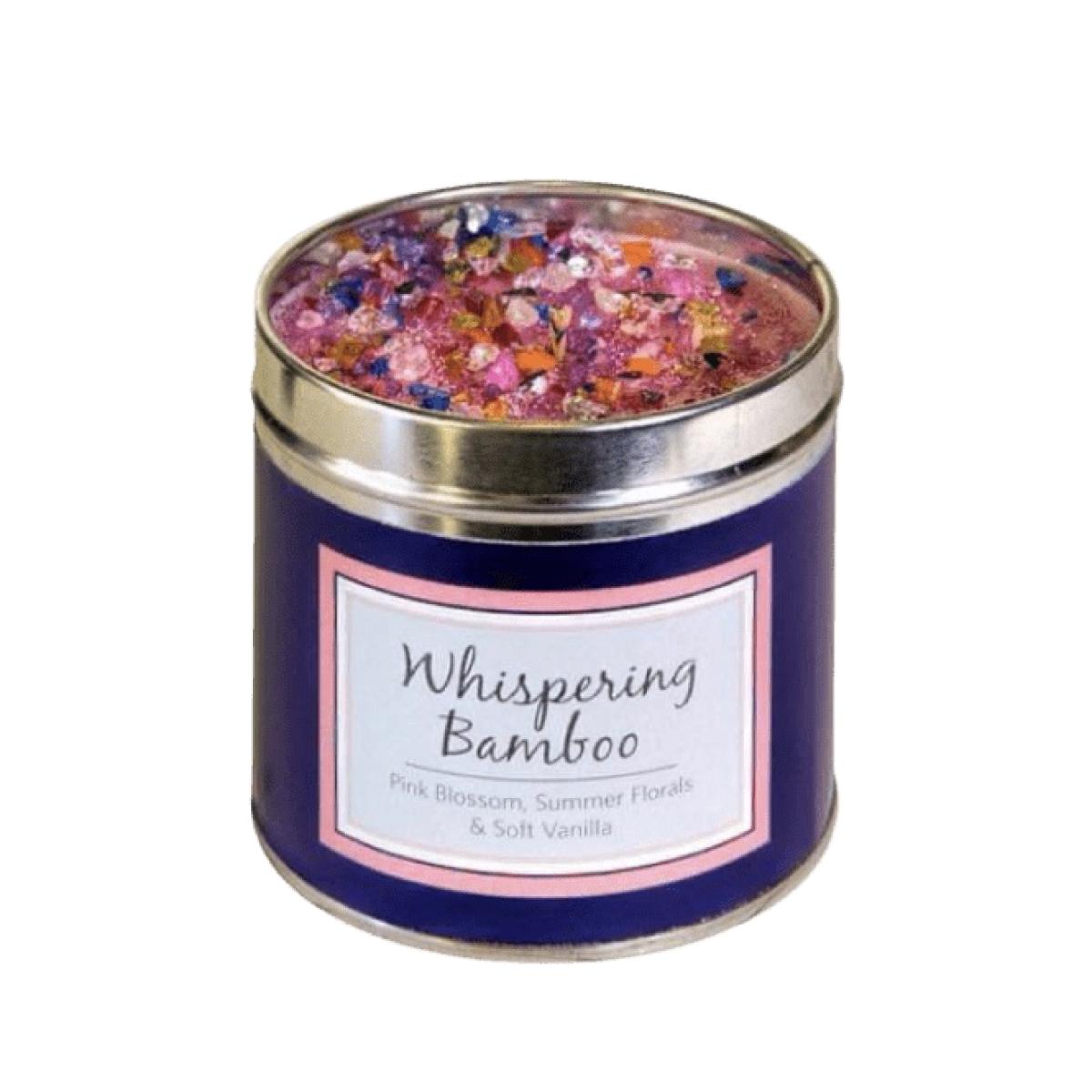 Whispering Bamboo candle - perfect for any occasion Best Kept Secrets believe that the secret to a great wax melt is the quality and consistency of the scent. Using only premium locally sourced supplies, and using traditional production and hand finishing, every Best Kept Secrets Candle is lovingly hand poured in Northumberland, using only natural wax. Beautifully packaged and seriously scented these Tin Candles are vegan friendly and cruelty free, These candles are full of fragrance, colour and sparkly toppings. They really are seriously scented!! Frangrance: Bergamot, rich amber and calming vanilla. Burn Time: 50 Hours Made in the UK Suitable for Vegans Cruelty Free