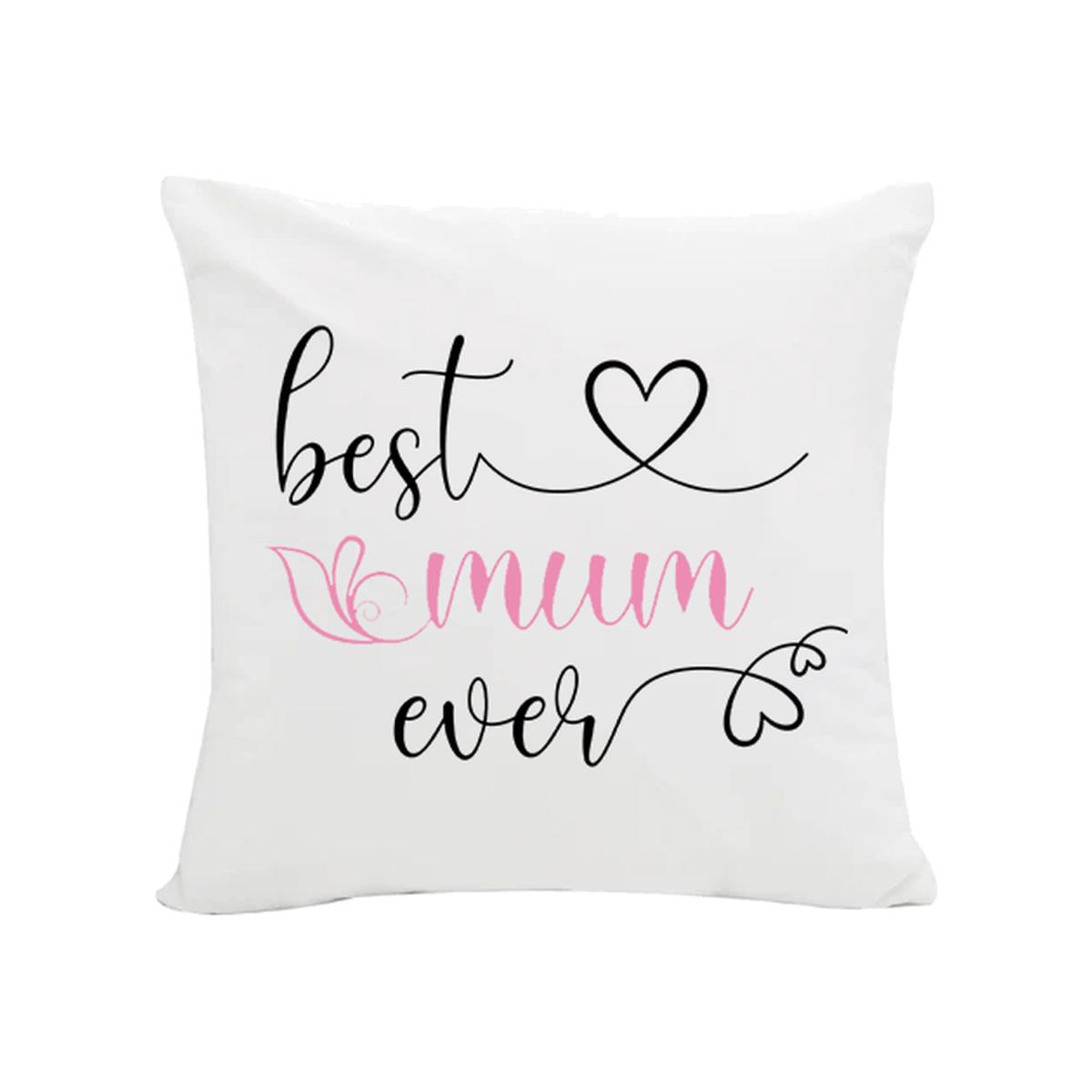 Add a touch of humour and comfort to your living space with this charming decorative cushion. The pristine white cushion features a bold, artistic typography design with the lovely message 'Best Mum Ever', making it a relatable and amusing accent piece. Crafted with a soft, cosy material, this cushion measures approximately 40 cm x 40 cm, offering both style and comfort. The black text stands out beautifully against the crisp white background, creating a modern, minimalist aesthetic that complements any home decor. Perfect as a thoughtful gift for mothers, this cushion serves as both a decorative element and a comfortable support for sofas, beds, or reading nooks. The lightweight design and durable construction ensure long-lasting use, while the removable cover allows for easy maintenance and washing. Whether it's for Mother's Day or any special occasion, this cushion brings a smile while providing a cosy spot to rest.