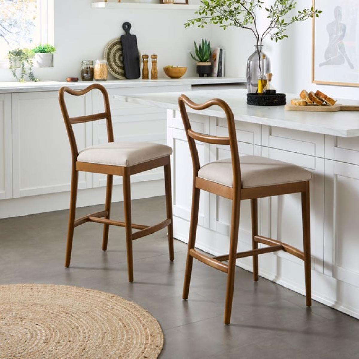 I love this stool for its versatile, classic aesthetic and comfortable height, making it a practical addition to many kitchen or bar areas. The fabric upholstery adds a cosy, inviting feel, perfect for casual dining or a relaxed drinks space. It works well in both modern and traditional interiors, particularly those with neutral or earthy tones, and can be easily styled with textured cushions or throws for added visual interest. For practical styling tips, consider pairing it with a matching bar table or mixing it with different chair styles for an eclectic look. Its neutral finish makes it adaptable to various colour schemes, ensuring it can seamlessly slot into your existing decor.