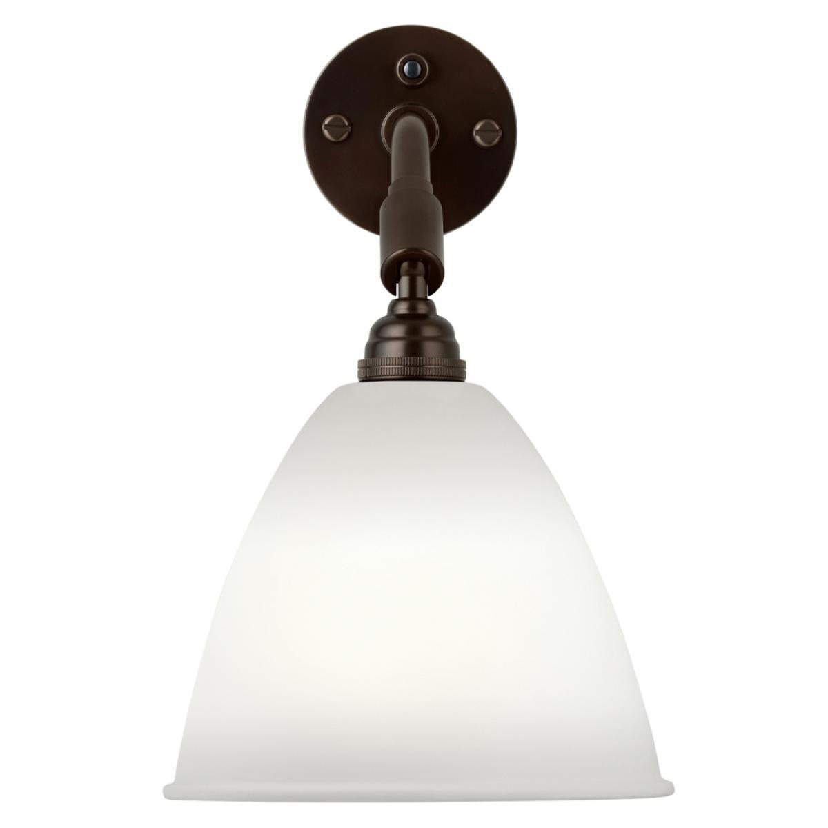 Robert Dudley Best’sbone china Bestlite BL7 Wall Lamp for GUBI is hailed as the first Bauhaus manifestation in England. The BL7 is crafted from brass or chrome and completed with a bone china shade, offering a timeless source of illumination. First produced by the manufacturing firm Best & Lloyd, founded by Best's family in 1840, the Danish design firm GUBI took over the international rights for the Bestlite collection in 2004. The Bestlite design was initially favoured by car mechanics because of its adjustability; however, the original swan-necked BL1 Lamp entered the nation's consciousness when it was pictured on Winston Churchill's desk in his air-raid shelter beneath Whitehall during World War II. Requires: 1x max. 30W bulb (not included).