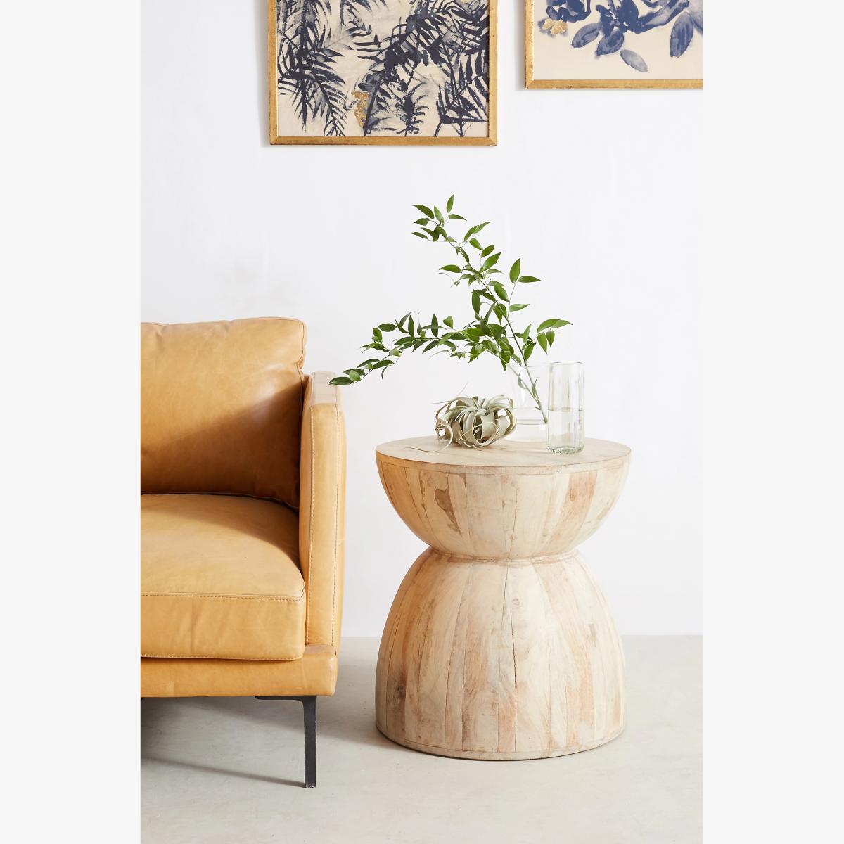 This handcarved accent piece is defined by a finish that reveals its one-of-a-kind hardwood texture, and a curved hourglass shape that delights the eye. * Furniture pieces weighing over 30kg include delivery to your room of choice and packaging removal * Handcarved tropical hardwood side table with a bleached white or blackened finish * Slight variation in natural wood texture will occur * Sealed with clear lacquer for protection * Wipe clean with soft cloth. Avoid using chemical cleaners * This piece is intended for indoor use * No assembly required * Imported