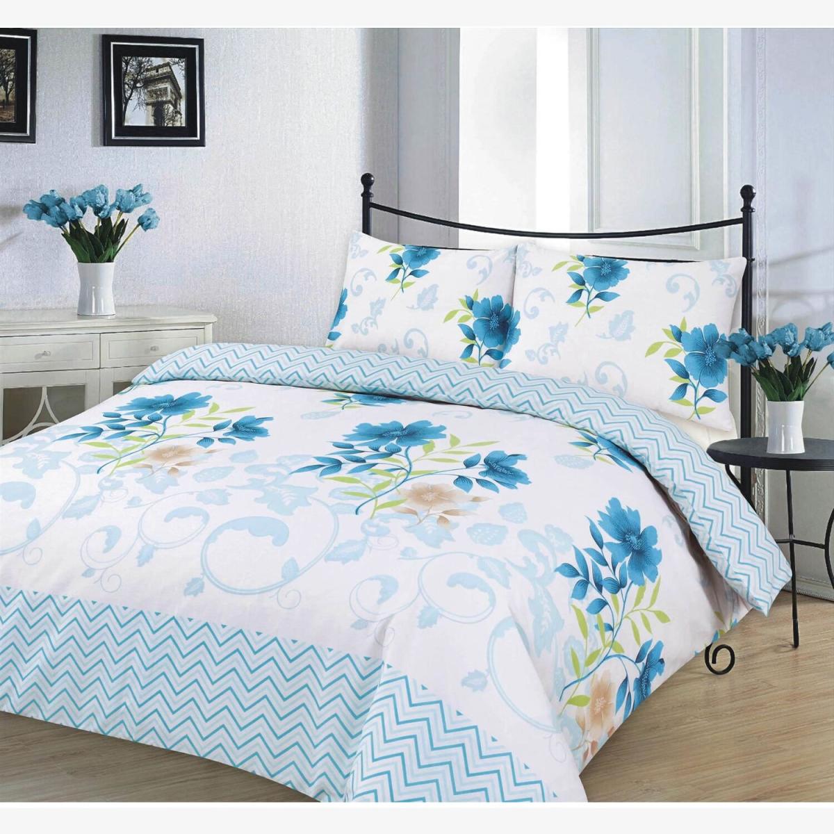 Give your bedroom a fresh spring look with this Bethany Duvet Cover Set. Featuring a fresh floral design in a teal colourway, this duvet will look stunning in any bedroom. This bedding is also fully reversible, with the reverse featuring a teal and white zig zag print. Made from polycotton fabric material that has the best of both worlds the natural breathability and beauty of cotton and the durability and longevity of polyester. Double duvet (200x200cm) and 2 pillowcases (50x75cm). Material composition 50 Cotton, 50 Polyester. Care instructions Machine Wash