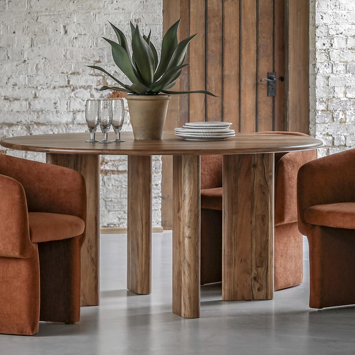 The perfect addition to the dining room. Made solid acacia wood, the warm natural finish shows off beautiful distinctive grain patterns and combines rustic charm with timeless elegance, with the flattened legs creating a unique talking point. A stylish centrepiece which invites you to savour dinner time. Product Details • Seats 4 • Made from solid acacia wood - strong, sturdy and with a simply stunning grain, acacia is also naturally scratch resistant, water resistant and anti-bacterial • Partial assembly required - legs/feet only. Product Composition - Acacia 98% / Metal Plate 2% Product Dimensions - 150 cm x150 cm x75 cm , Weight - 86.2 KGLeg / Feet Height - 72 cm Clearance to Floor - 72 cm Parcel 1 Packaged Dimensions - 154 cm x 154 cm x 9 cm, Weight 49.4 kg Parcel 2 Packaged Dimensions - 81 cm x 38 cm x 33 cm, Weight 49.2 kg. This product will be dispatched by one of our trusted suppliers. You’ll be contacted by their selected courier about your delivery. Please note: this product cannot be delivered to all Offshore Islands, Northern Ireland or Republic of Ireland. GALLE01