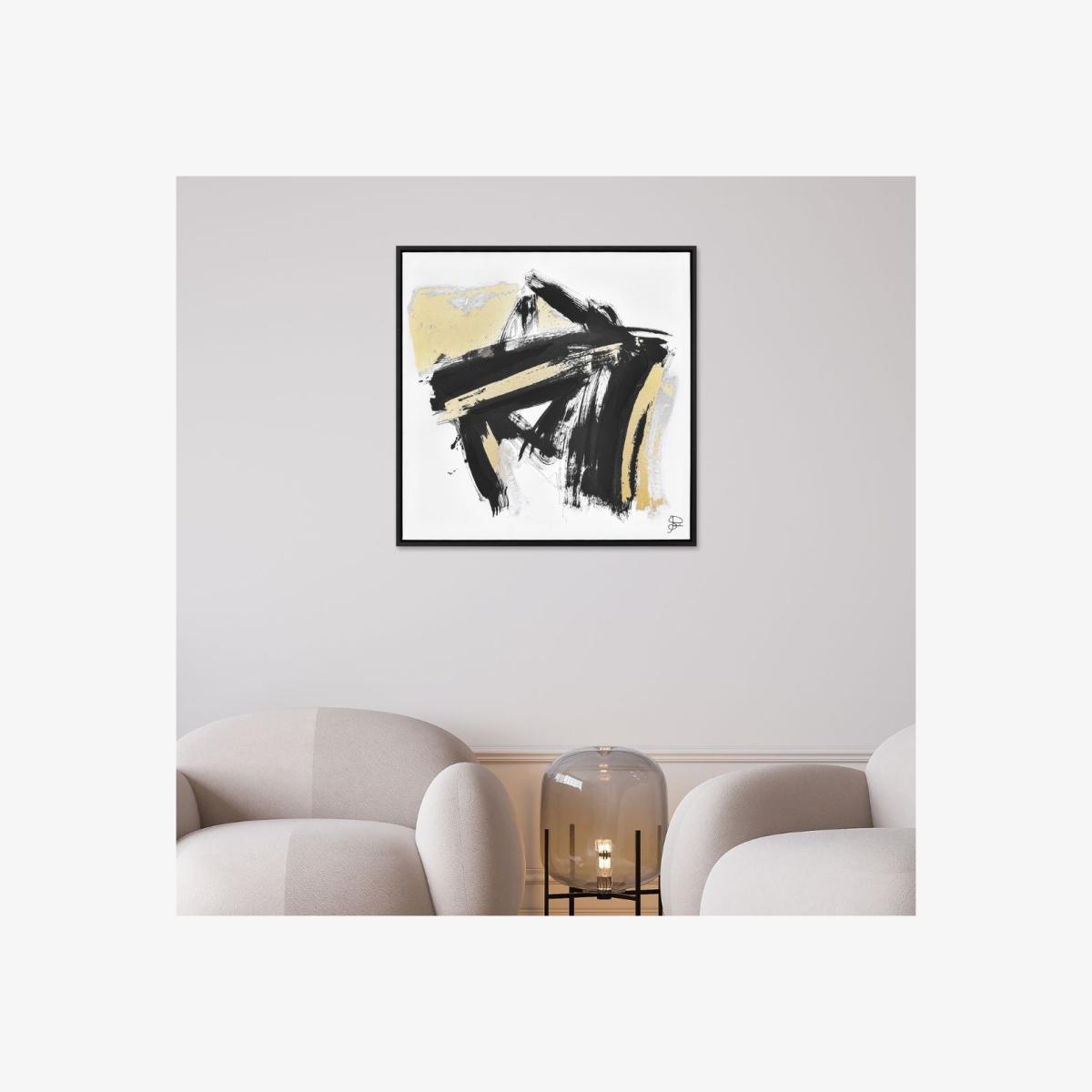 "Between Layers" hand-painted, abstract black and gold canvas by Joanna Srokol, featuring a black frame and gold foil embellishments. "Between Layers" by Joanna Srokol is a captivating abstract canvas that combines bold, contemporary artistry with luxurious detailing. The square composition features deep black tones layered with dynamic strokes of gold, creating a striking contrast that draws the eye. Gold foil embellishments add a touch of opulence, giving the piece a luminous quality that enhances its depth and texture. Framed in sleek black, this artwork makes a dramatic statement in any space, whether displayed in a living room, office or hallway. "Between Layers" hand-painted, abstract black and gold canvas by Joanna Srokol, featuring a black frame and gold foil embellishments. "Between Layers" by Joanna Srokol is a captivating abstract canvas that combines bold, contemporary artistry with luxurious detailing. The square composition features deep black tones layered with dynamic strokes of gold, creating a striking contrast that draws the eye. Gold foil embellishments add a touch of opulence, giving the piece a luminous quality that enhances its depth and texture. Framed in sleek black, this artwork makes a dramatic statement in any space, whether displayed in a living room, office or hallway.