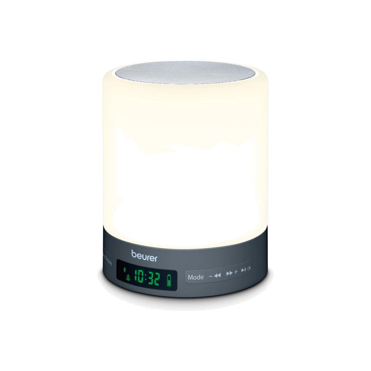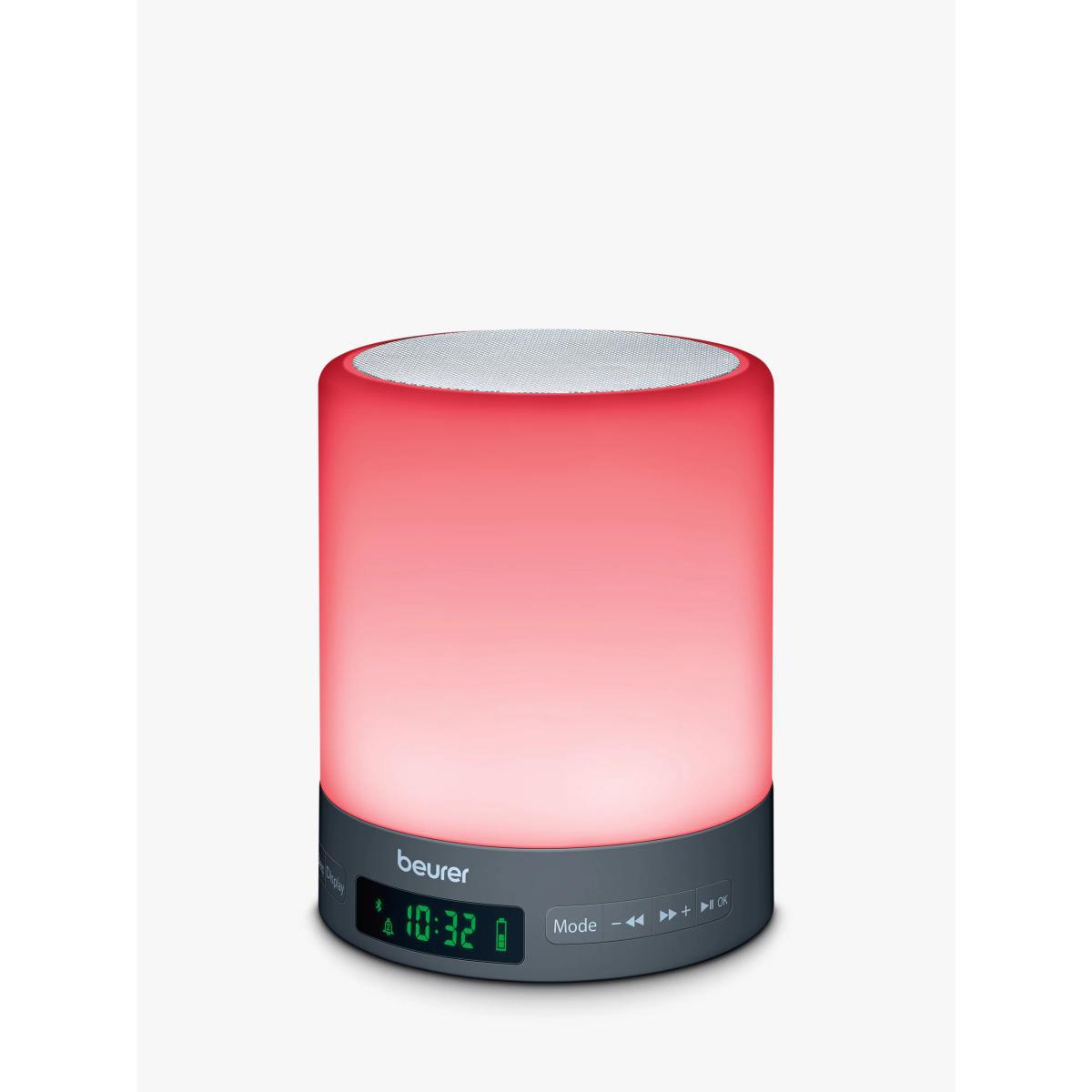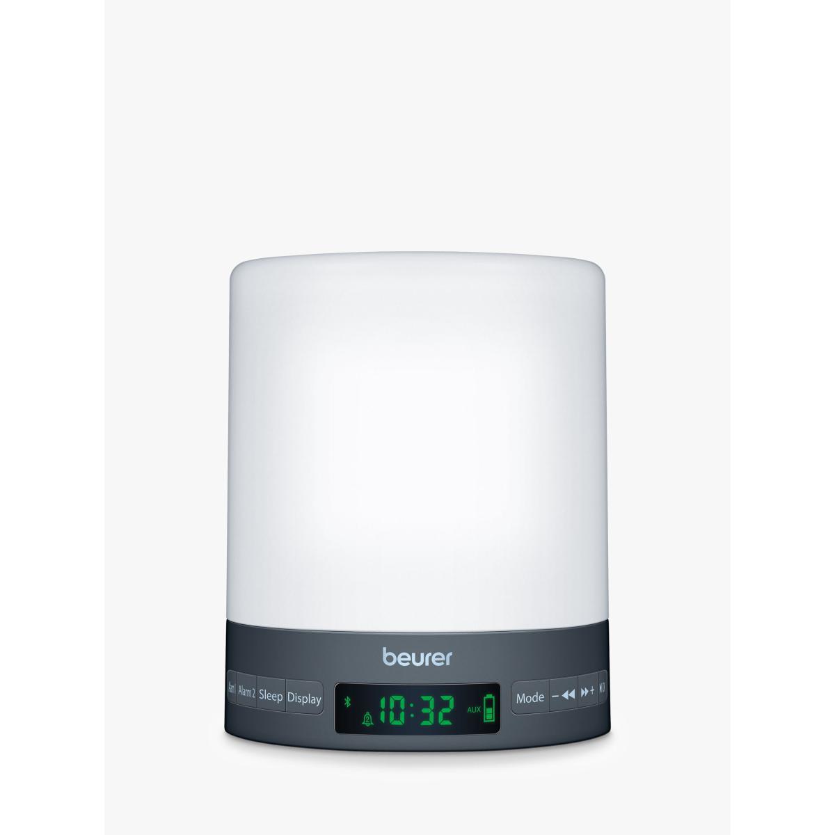The WL50 from Beurer allows you to fall asleep naturally and wake up gently with simulations of sunrise and sunset. Its slimline design, thanks to LED technology, is equipped with various light and sound settings that can help to support the sleep rhythm. Fall asleep naturally The integrated LED in this lamp has an adjustable light intensity, allowing you to create tailored mood lighting throughout the day. What's more, it has individual colour-change settings, so you can also use this lamp as a night light or drift of to sleep with a simulated sunset. Using sound, there's also a sleep melody and lullaby setting that can hep to support your sleep cycle. Wake up gently With a choice of two wake-up melodies, an alarm with snooze functionality and an FM radio, there are lots of different ways to make the morning wake-up call easier. For a more relaxing start, use the light simulated sunrise setting to introduce gradual light each day, proven to boost mood, productivity and energy levels so that you feel ready for the day ahead. Additional features: Adjustable light intensity settings with 3 light levels Built-in Bluetooth® speaker FM radio with 10 memory spaces Digital display with adjustable brightness and touch control Aux input to play your own music. Aux cable supplied.