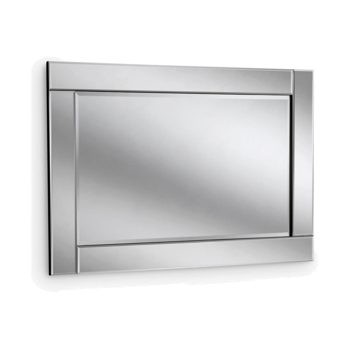 A rectangular wall mirror framed by bevelled-glass panels. This contemporary mirror has hanging hooks attached at the back for easy installation on a wall, either vertically or horizontally. Have you thought about wall ?