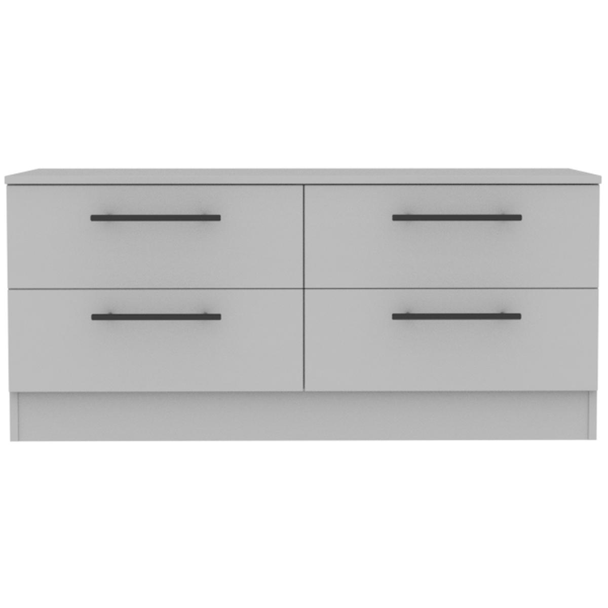 A large 4 drawer bed box. A Perfect storage solution for any room (not just the end of your bed). Could also be used as a low level TVMedia stand. This range is modern and elegant with a smooth clean design. Features sleek black T-Bar handles and comes ina range of scratch resistant colours. All our furniture is made in the United Kingdom, to the highest quality. It is delivered direct to your location of choice by one of our two man delivery teams, and come full assembled (although legs may be removed to prevent damage in transit).