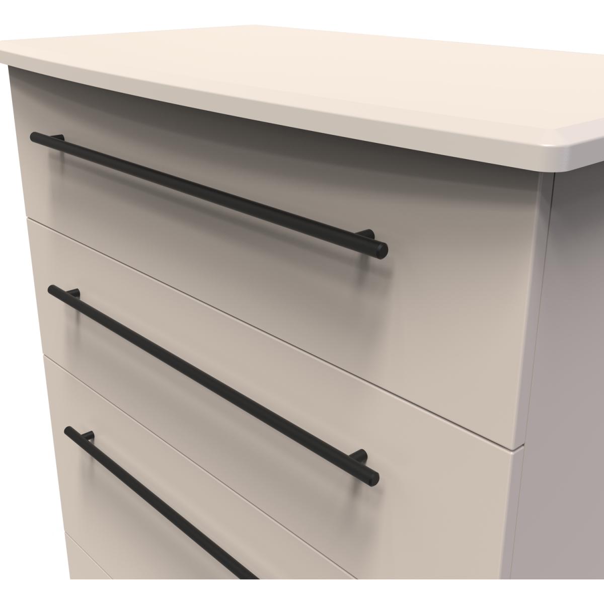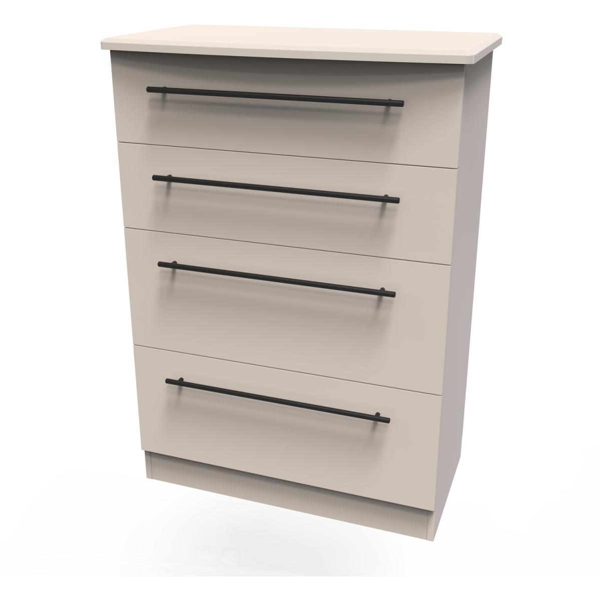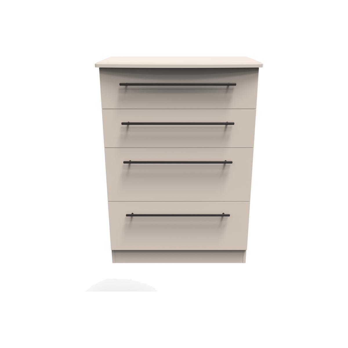 This deep 4 drawer chest of drawers is practical and stylish. Perfect for any home as a free standing storage unit. This range is modern and elegant with a smooth clean design. Features sleek black T-Bar handles and comes ina range of scratch resistant colours. All our furniture is made in the United Kingdom, to the highest quality. It is delivered direct to your location of choice by one of our two man delivery teams, and come full assembled (although legs may be removed to prevent damage in transit).