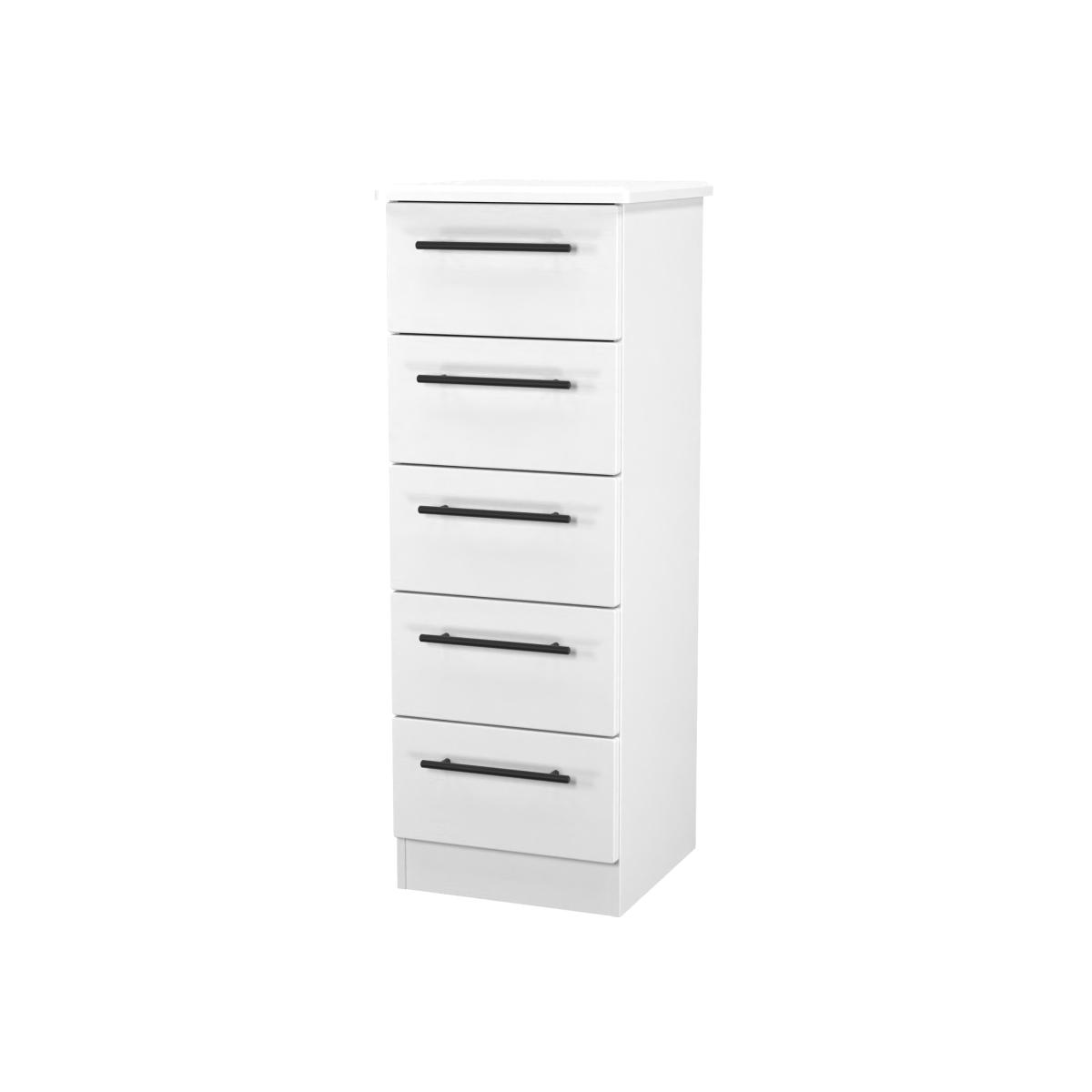 Beverley Ready Assembled 5 Drawer Tallboy - White Ash
