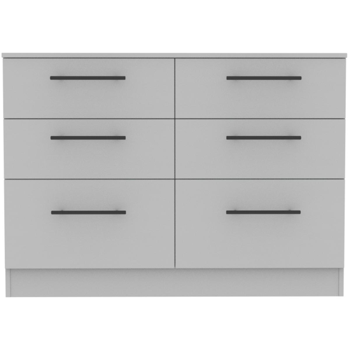 This double width 6 drawer chest of drawers is practical and stylish. Perfect for any home as a free standing storage unit. This range is modern and elegant with a smooth clean design. Features sleek black T-Bar handles and comes ina range of scratch resistant colours. All our furniture is made in the United Kingdom, to the highest quality. It is delivered direct to your location of choice by one of our two man delivery teams, and come full assembled (although legs may be removed to prevent damage in transit).