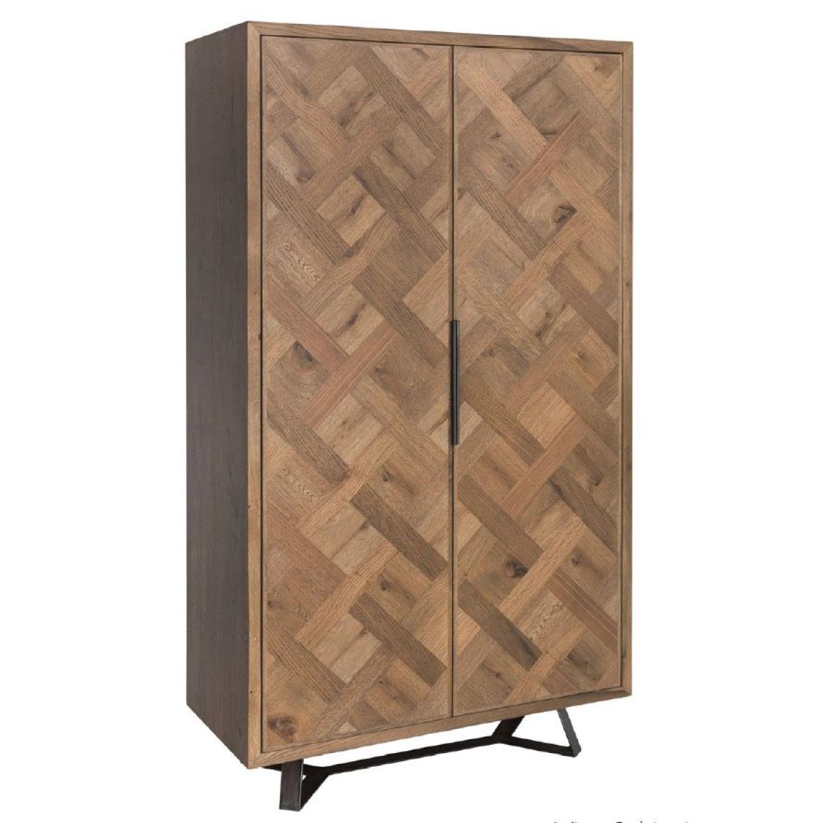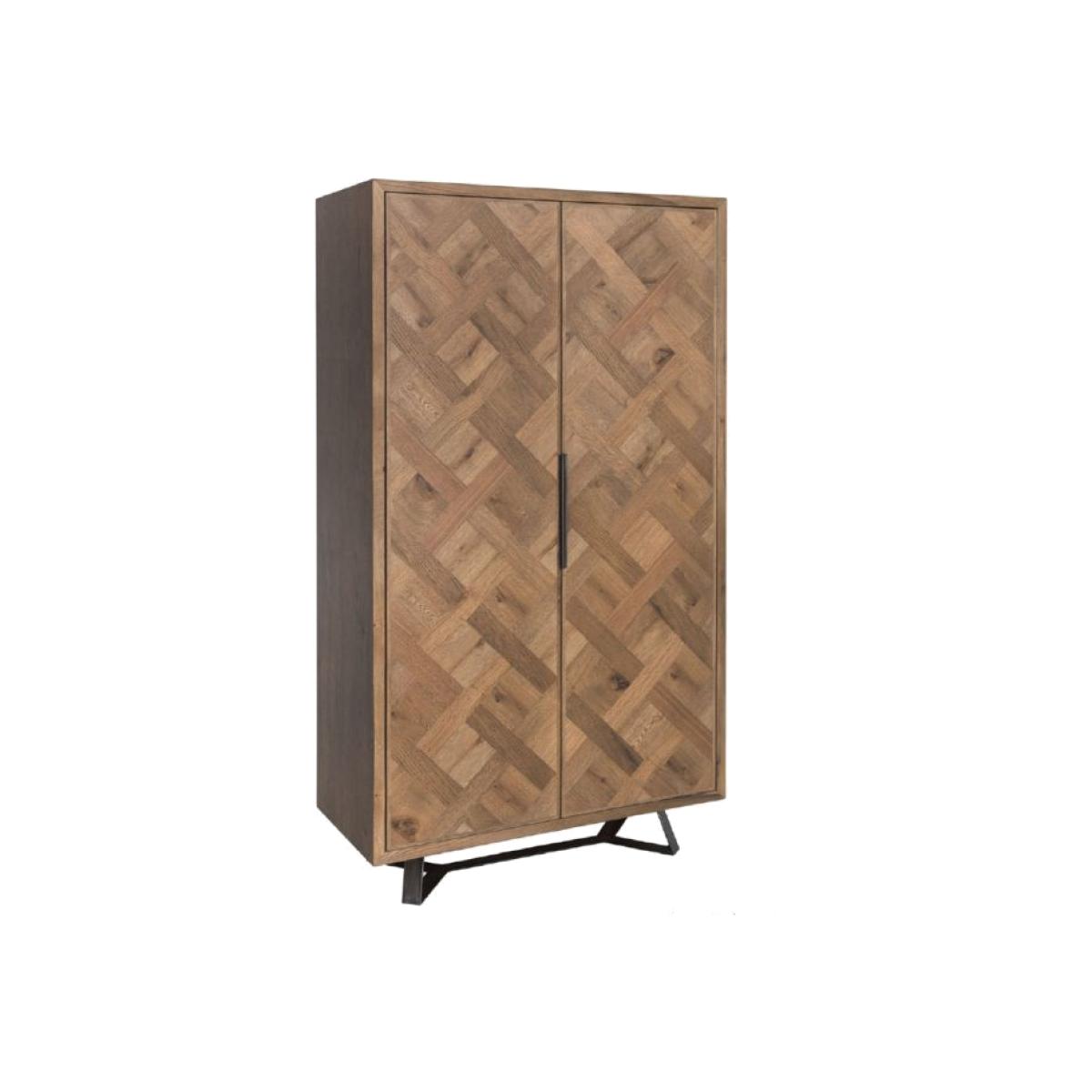 This unique collection displays a basket weave pattern inlay on table tops and cabinet fronts, featuring aged grey oak and oak veneers and finished with a discrete top mounted grip handle in light gun metal grey. The angular legs, also finished in light gun metal grey, bring the traditional and modern together for the best of both worlds. Featuring soft close doors and a shelved interior, this is not only great for storing wine but you can use it to store dvds/videos and a whole host of other items. When the doors are closed all that clutter is hidden from view. Dimensions: W100cm x D45cm x H184cm. Smooth Oak Parquet finish. Angular metal legs with rubber feet for floor protection. Partial assembly required. All screens vary in colour reproduction and whilst every effort has been made to display the colour as accurately as possible it is for guidance only.