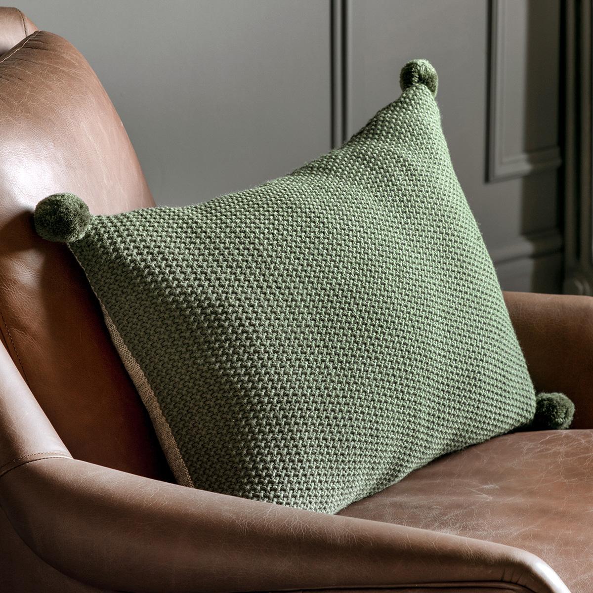 I really like this cushion for its textured knit finish and versatile olive hue, which adds a subtle pop of colour without overpowering a space. It works particularly well in cosy, casual settings like a lived-in sofa or armchair, especially when paired with other earthy tones or neutral shades for a layered look. The pom-pom detail adds a touch of playful charm, making it suitable for both contemporary and boho interiors. For styling, consider layering it with complementary cushions in natural fabrics or pairing it with textured throws to enhance its tactile appeal. It’s a great piece to bring comfort and character to your living area.