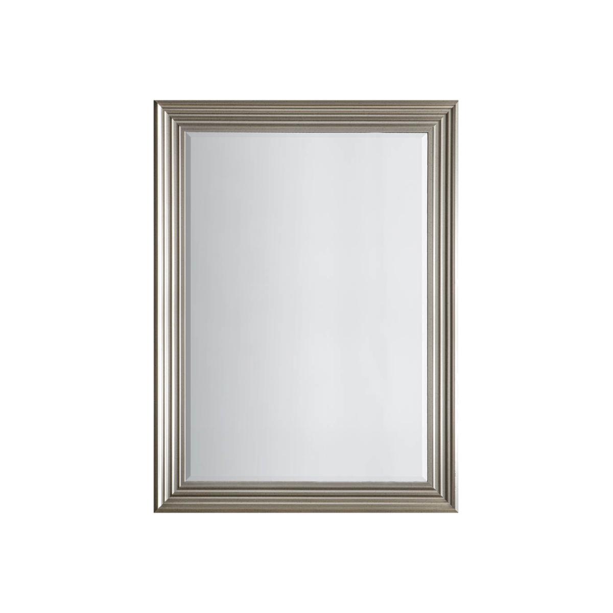 Elegant mirror featuring a stepped frame in a brushed steel finish. Other sizes also available. Shape: Rectangle. Material: Glass, MDF, PS. Colour/Finish: Silver. Mount Type: Wall.