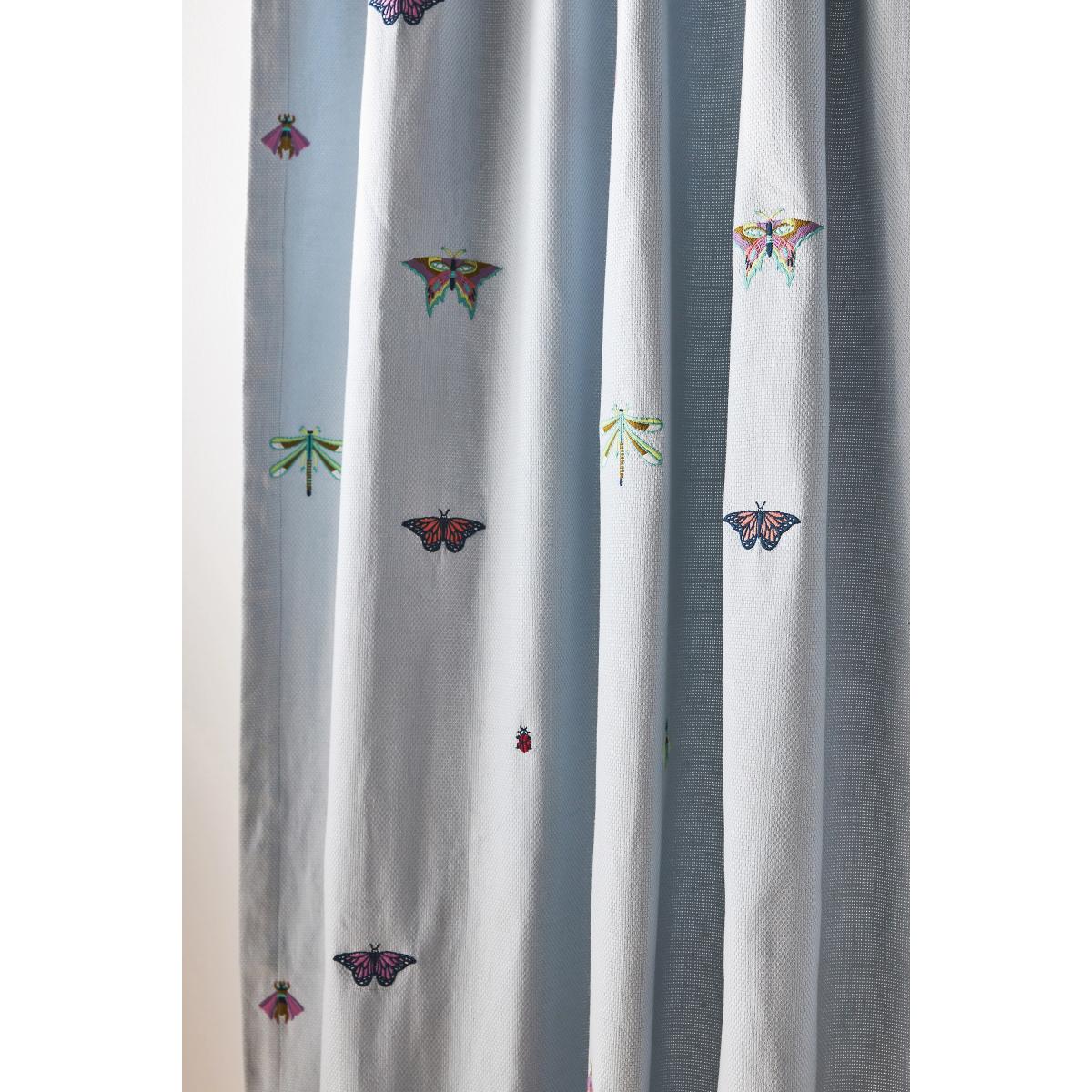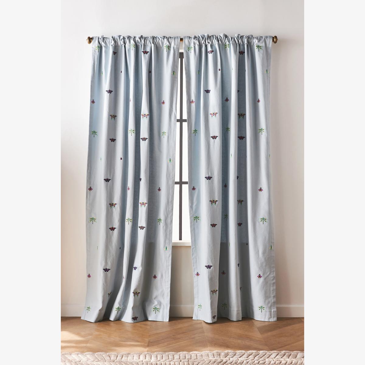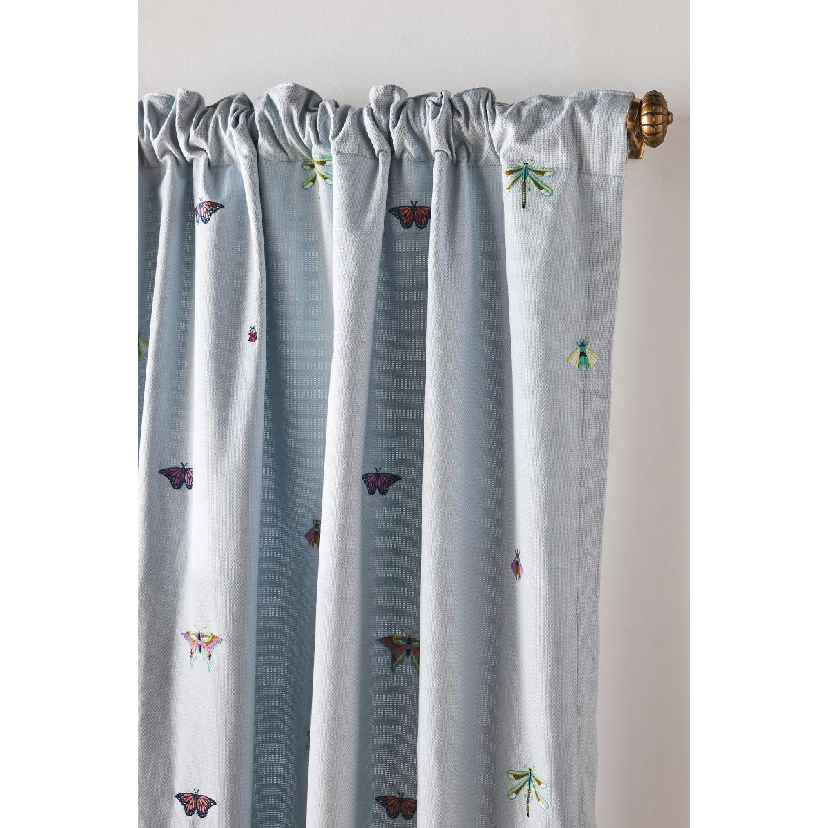 Sold individually 100% Cotton; 100% Cotton lining; 100% Polyester embroidery This style is light filtering Tunnel-tab construction Lined Machine wash Imported Bexley Embroidered Curtain by Anthropologie in Blue Size: 50 x 84