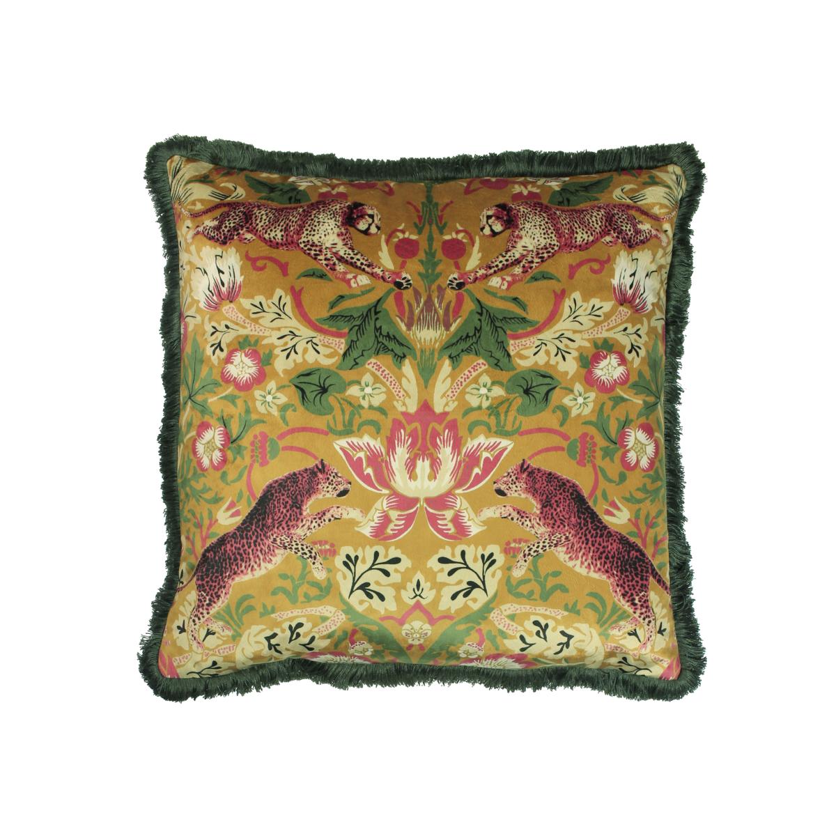 Add a pop of colour to your interior with this vibrant floral printed design accompanied with poised Leopards. Layer up on neutrals and place on any chair or bed to make a statement in your modern or contemporary interior.