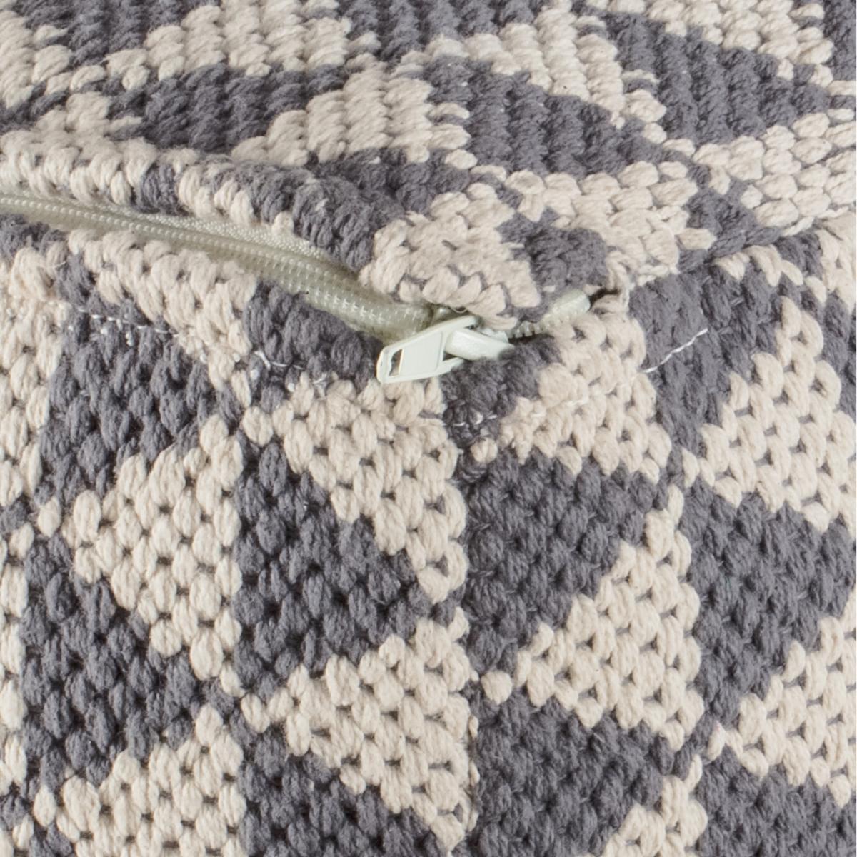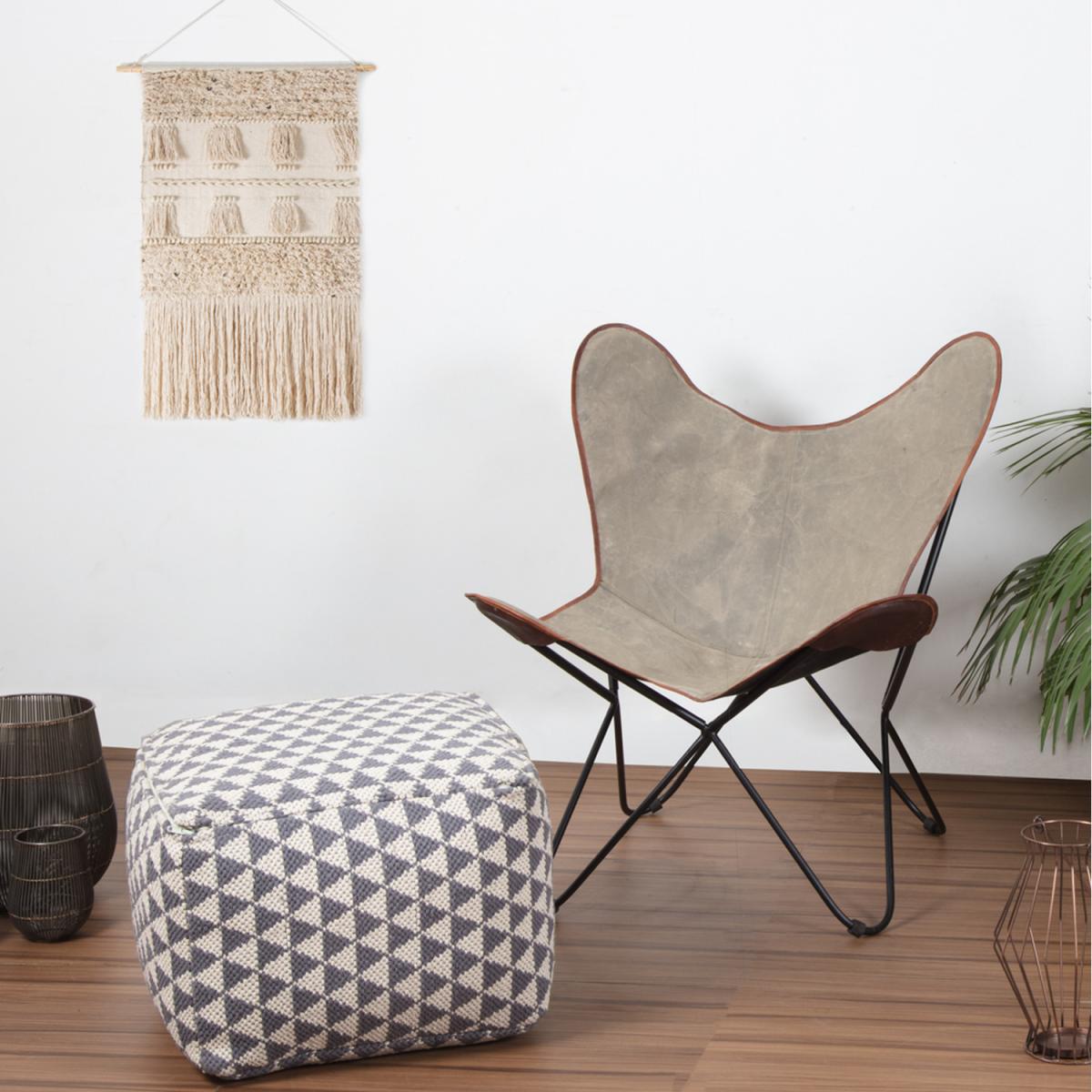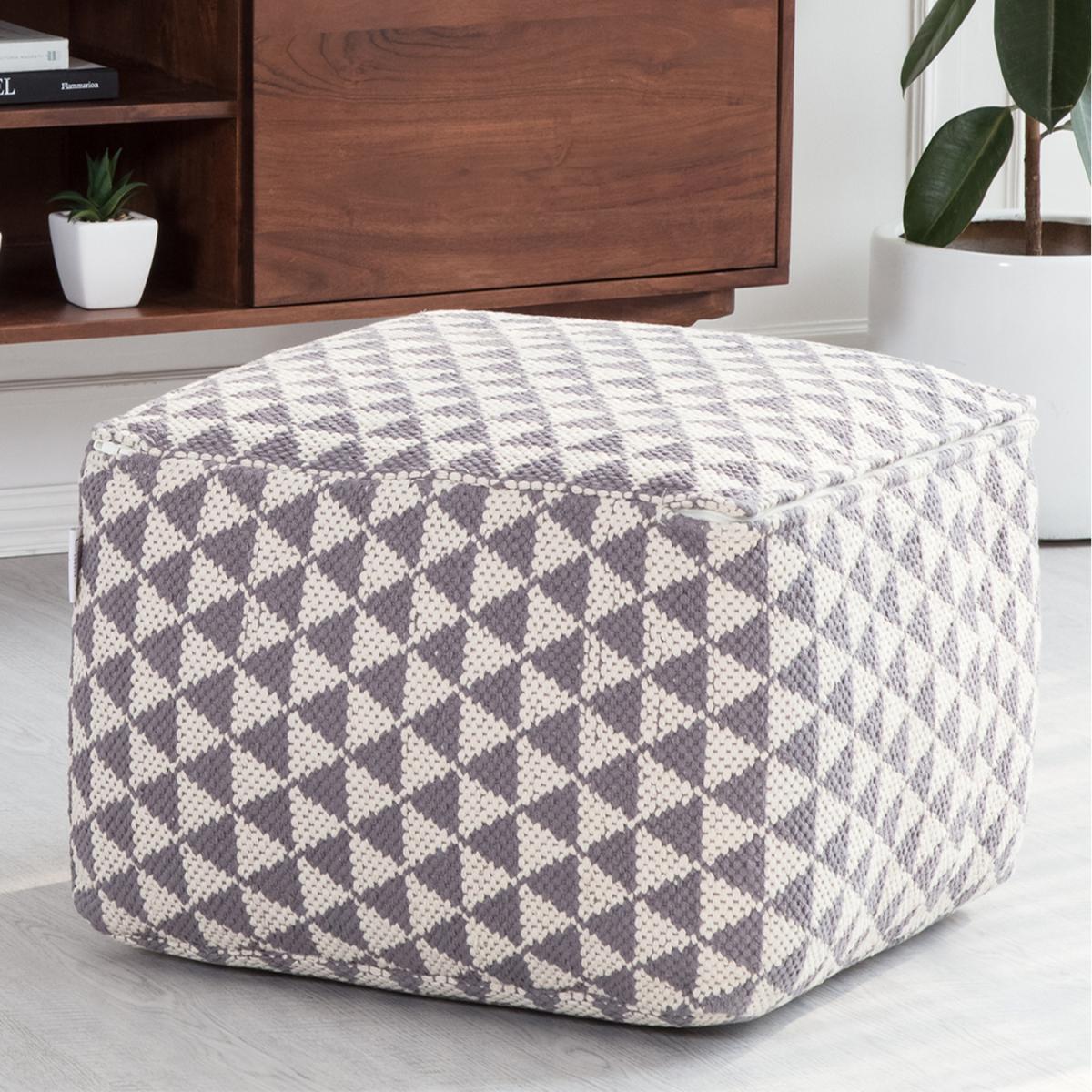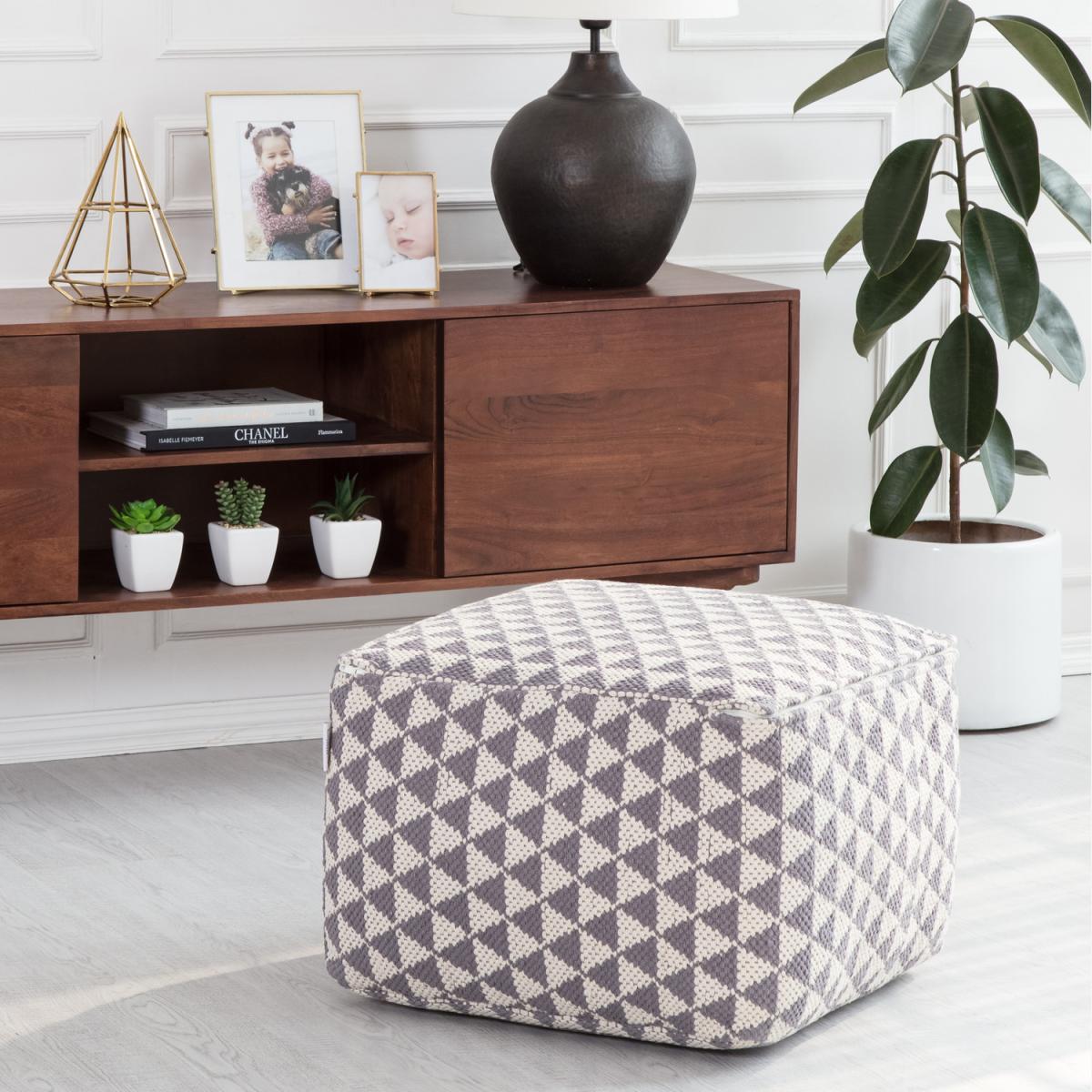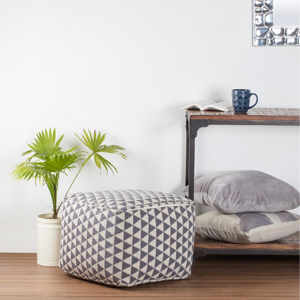 Sturdy enough to function as an impromptu seat and low enough to serve as a comfortable foot rest, this handwoven pouf is a wonderful choice for a modern living room. Handcrafted in India, the pouf features a triangle pattern in a cool blue and white colour scheme.