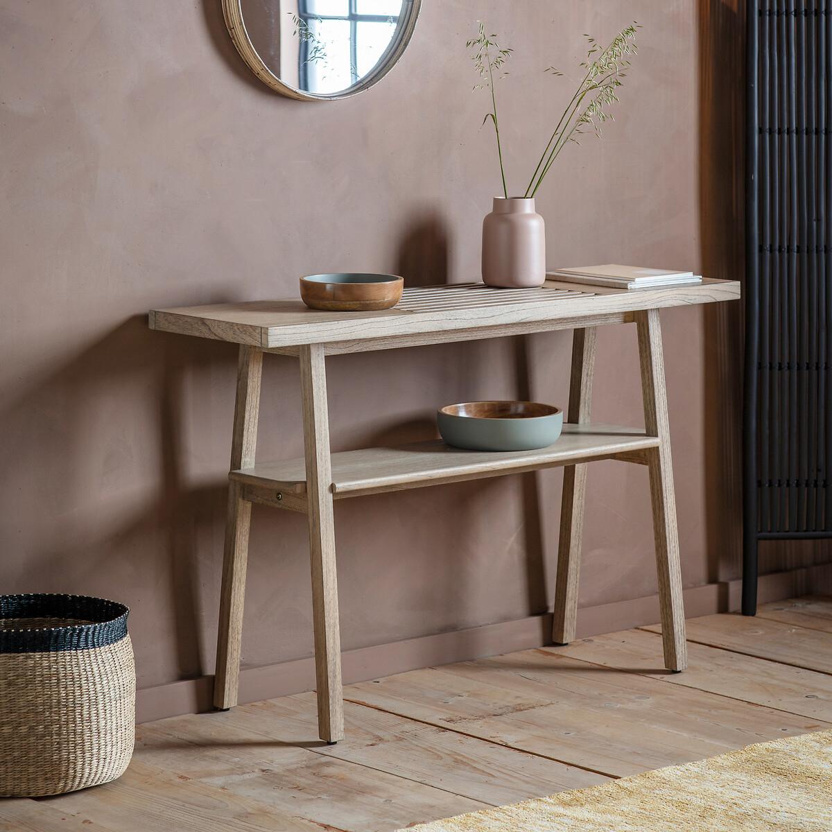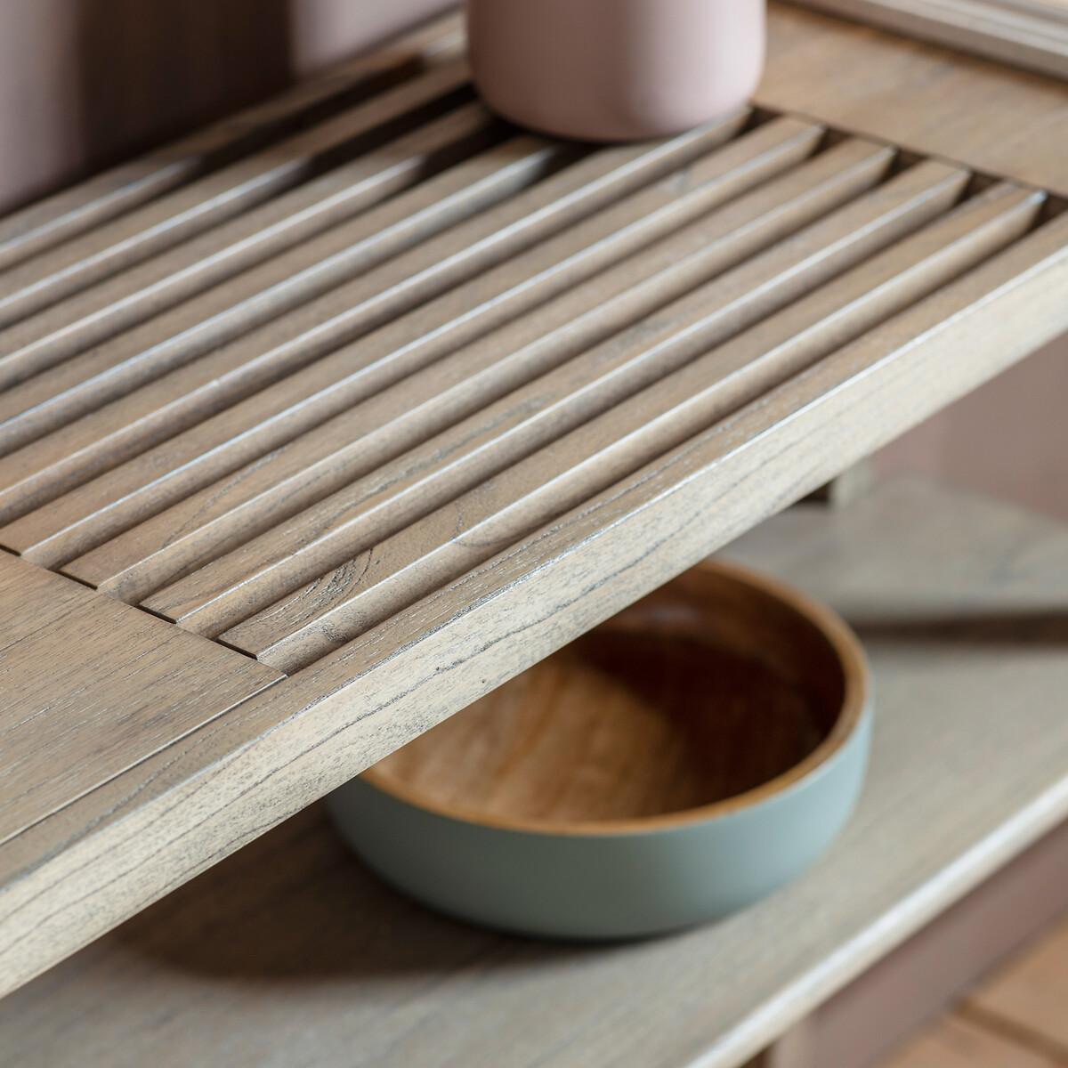 The Bharhut Slatted Console Table is the perfect piece to add a touch of unique style to any interior. It has been developed with Japandi influences to give the ideal fusion of Japanese and Scandinavian design. This beautiful console table, crafted from Mindy ash, features an unusual slatted central section, adding a stylish design feature. Product details. Traditional lightly weathered finish. Modern slatted detailing. Hand-woven cane. Brushed bronze handles1 shelf. Fixed shelving. Anti-topple kit provided. Partial assembly required (legs / feet only)Product Composition - Solid Mindi, Particle board Product Dimensions - 36.7 cm x 125 cm x 80 cm , Weight - 14 KGInternal Cupboard Size- 86 x 28..6 x 23.9 cm Distance Between Shelves- 23.9 cm Package Dimensions - 145 cm x 42 cm x 15 cm, Weight 18 kg. This product will be dispatched by one of our trusted suppliers. You’ll be contacted by their selected courier about your delivery. Please note: this product cannot be delivered to all Offshore Islands, Northern Ireland or Republic of Ireland.