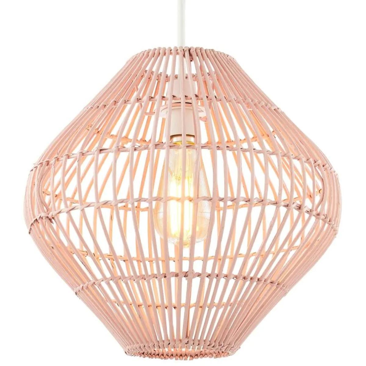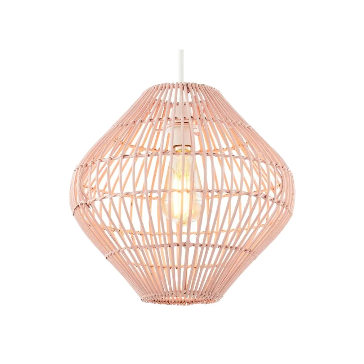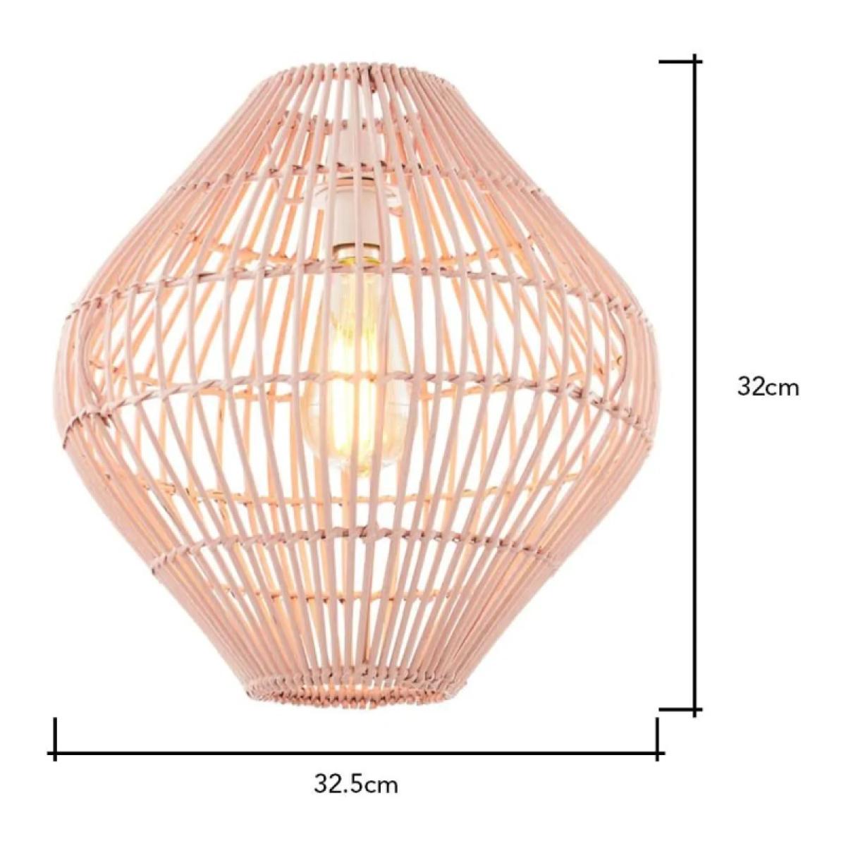 Add a soft, natural touch to your space with the BHS Bamboo Bobbin Easy Fit Light Shade in Pink Matt. This charming light shade, crafted from sustainably sourced bamboo, features a subtle bobbin design and a lovely matte pink finish, combining elegance with a fresh, modern vibe. With its easy-fit construction, it’s designed for quick and tool-free installation, making it an effortless way to update any room's lighting. The light shade diffuses light beautifully, creating a warm and inviting glow ideal for bedrooms, living rooms, or nurseries. The natural bamboo adds a unique texture, while the soft pink tone brings a gentle pop of colour that enhances both contemporary and bohemian interiors. Shade Material: Rattan Colour:Matte Pink Height: 32cm Diameter: 32.5cm All screens vary in colour reproduction and whilst every effort has been made to display the colour as accurately as possible it is for guidance only.