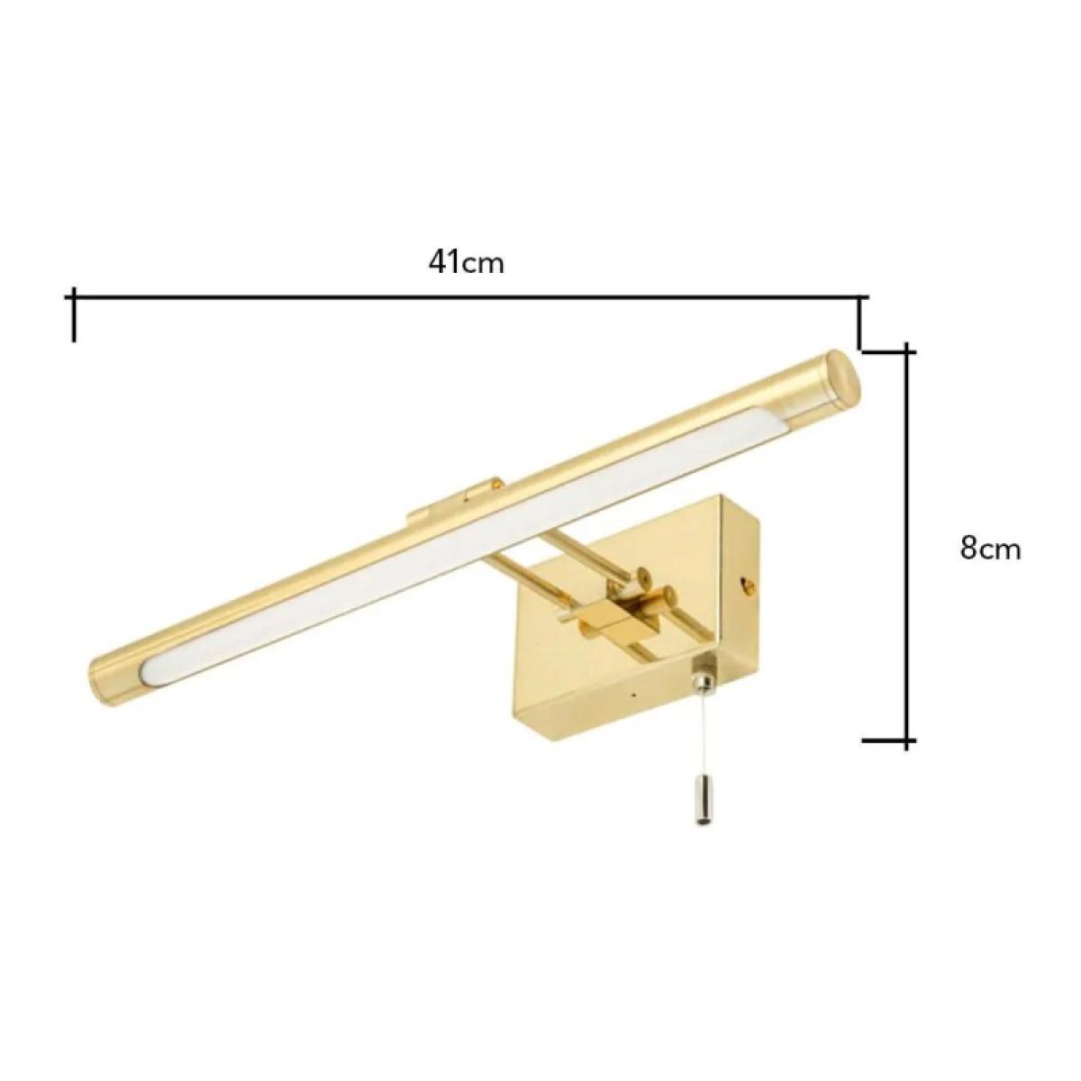 Bathroom wall lights provide essential illumination for even the most challenging spaces, and the BHS Barrio pull cord wall light is perfect for positioning above a mirror—ideal for shaving, applying makeup, or anything in between. With a sleek and stylish design, this picture light features an IP44 rating for safe bathroom use while seamlessly complementing modern interiors. Finished in satin brass, it adds a warm, sophisticated touch to your décor Designed for versatility, these picture lights can be installed anywhere in the home, with IP44 protection ensuring safe use in bathrooms. Number of Lights 1 Bulbs Included LED Integrated 8 Watt Average Life 20,000 Hours Switch Type Pull-Chain/Cord Colour Temperature 3000. K Warm White IP Rating IP44 Rated Dimensions Height 8cm Width 41cm Projection 16m Weight 0.7kg All screens vary in colour reproduction and whilst every effort has been made to display the colour as accurately as possible it is for guidance only.