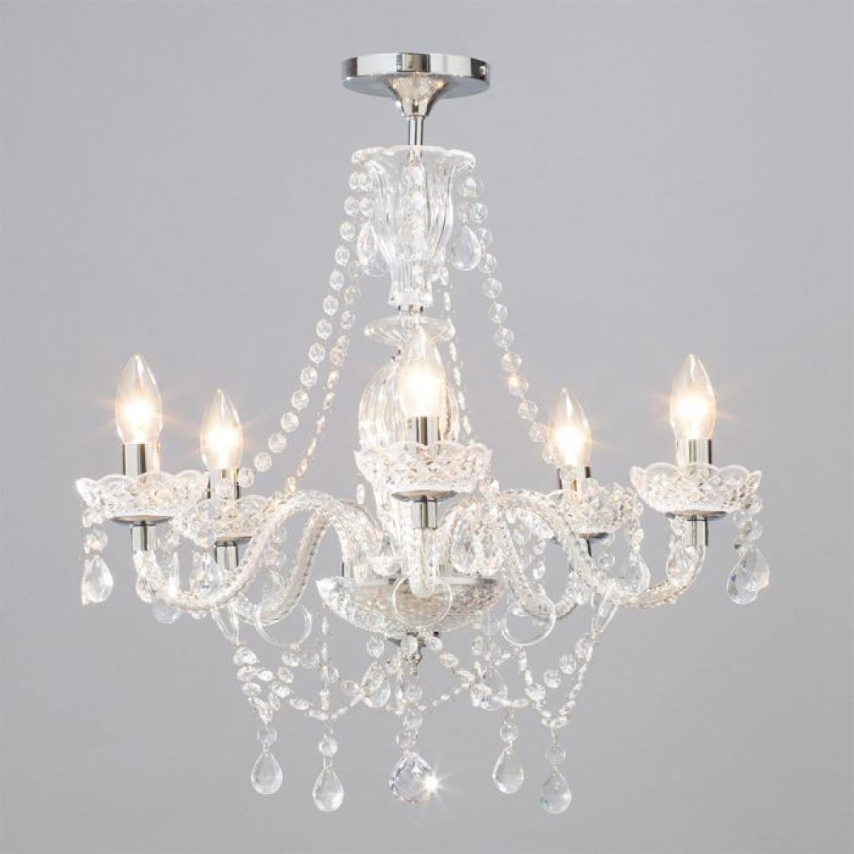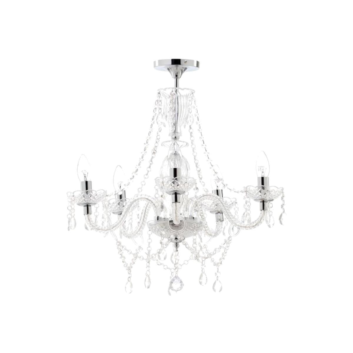 The Charlotte semi flush ceiling light will bring a air of elegance into your home! The 5 light fitting is finished in chrome is decorated with an arrangement of beading and droplets which add a sophisticated sparkle to the piece as they catch the light. The semi-flush design of this Charlotte light makes a fantastic choice for lower ceilings, minimising the required drop so that you can use the fixture in smaller spaces. Its Ideal for the dining room or bedroom, and its 5 lights make sure your room is prefectly illuminated.