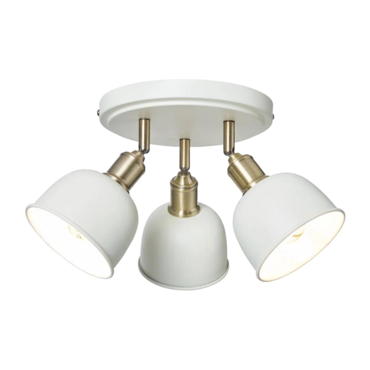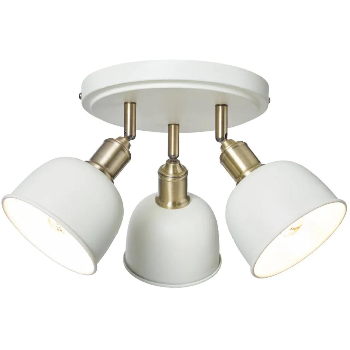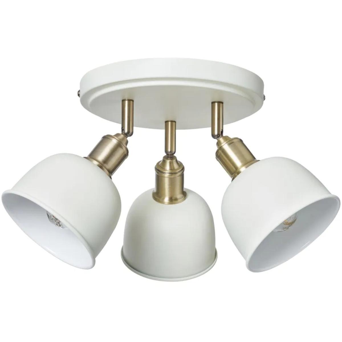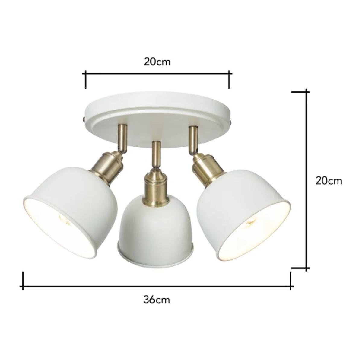 The BHS Dale Galley 3-Light Adjustable Spotlight Plate in Satin Ivory blends retro charm with modern versatility to brighten up any room effortlessly. Featuring three movable spotlight heads, it allows you to precisely direct light—ideal for task areas like kitchens, hallways, or workspaces—while the soft satin ivory finish paired with antique brass accents adds a chic, neutral elegance to your décor. Designed as a sleek ceiling-mounted plate, it’s compact yet impactful, offering style and practicality in equal measure. Material: Metal Product Type: Spotlight Ivory Round Ceiling Plate with Brass Accents & 3 Metal Movable Spotlights Number of Lights: 3 Bulb Type: E14 Small Edison Screw (not included) Bulb Shape: Golfball Max Wattage: 6 W Some Assembly Required Dimensions: Height: 20cm Diameter: 36cm Shade Height: 8.5cm Shade Diameter: 12cm Ceiling Cap: 20cm Weight: 1.3kg All screens vary in colour reproduction and whilst every effort has been made to display the colour as accurately as possible it is for guidance only.