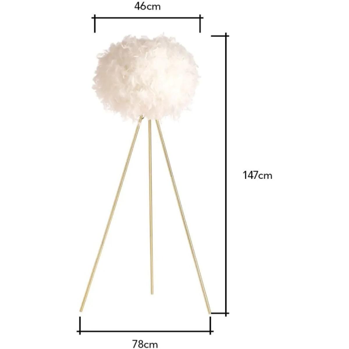 Add a touch of elegance and whimsy to your space with the BHS Feather Tripod Floor Lamp in Satin Brass and White. This stunning lamp features a graceful, feathered shade that softens the light, creating a warm and inviting glow. Paired with a sleek satin brass tripod base, this lamp combines luxurious textures with modern style, making it an eye-catching statement piece in any room. Ideal for living rooms, bedrooms, or reading corners, this floor lamp adds a sophisticated yet playful touch to your décor. The tripod design ensures stability, while the feather shade adds a unique visual texture, making it both functional and stylish. Number of lights: 1 Bulb type: 1 x E27 Edison Screw bulb required (not included) Compatible with LED Max Wattage: 42 W Base Material: Metal Some assembly required Dimensions: Height: 147cm Width: 46cm Base Diameter: 78cm All screens vary in colour reproduction and whilst every effort has been made to display the colour as accurately as possible it is for guidance only.