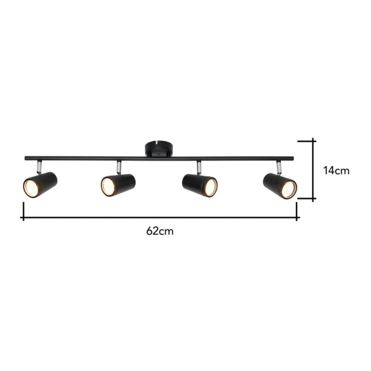 The BHS Frida Ceiling Spotlight Bar in Black is a sleek, versatile lighting solution designed to deliver stylish, focused illumination. Featuring four adjustable GU10 spotlight heads, it lets you direct light precisely—perfect for tasking or mood-setting in kitchens, bathrooms, and hallways. Crafted with a matte black finish and IP44 rating, it’s both contemporary and durable, offering moisture-resistant performance ideal for steamy environments. Compact and elegant, the flush-mount bar fits seamlessly into modern interiors, providing targeted brightness with minimal fuss. Material: Metal Shade Material: Glass Product Type: Spotlight Black Bar Ceiling Plate with Chrome Accents & 4 Metal Movable Spotlights Number of Lights: 4 Bulb Type: GU10 LED (not included) Max Wattage: 8 W IP Rating: IP44 Rated Voltage: 220-240V Dimensions: Height: 14cm Width: 62cm Weight: 1.2kg All screens vary in colour reproduction and whilst every effort has been made to display the colour as accurately as possible it is for guidance only.