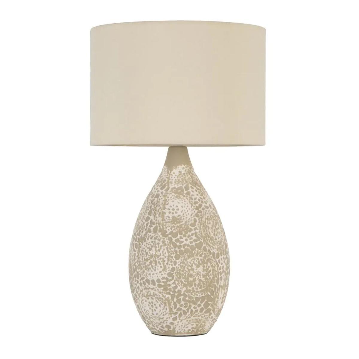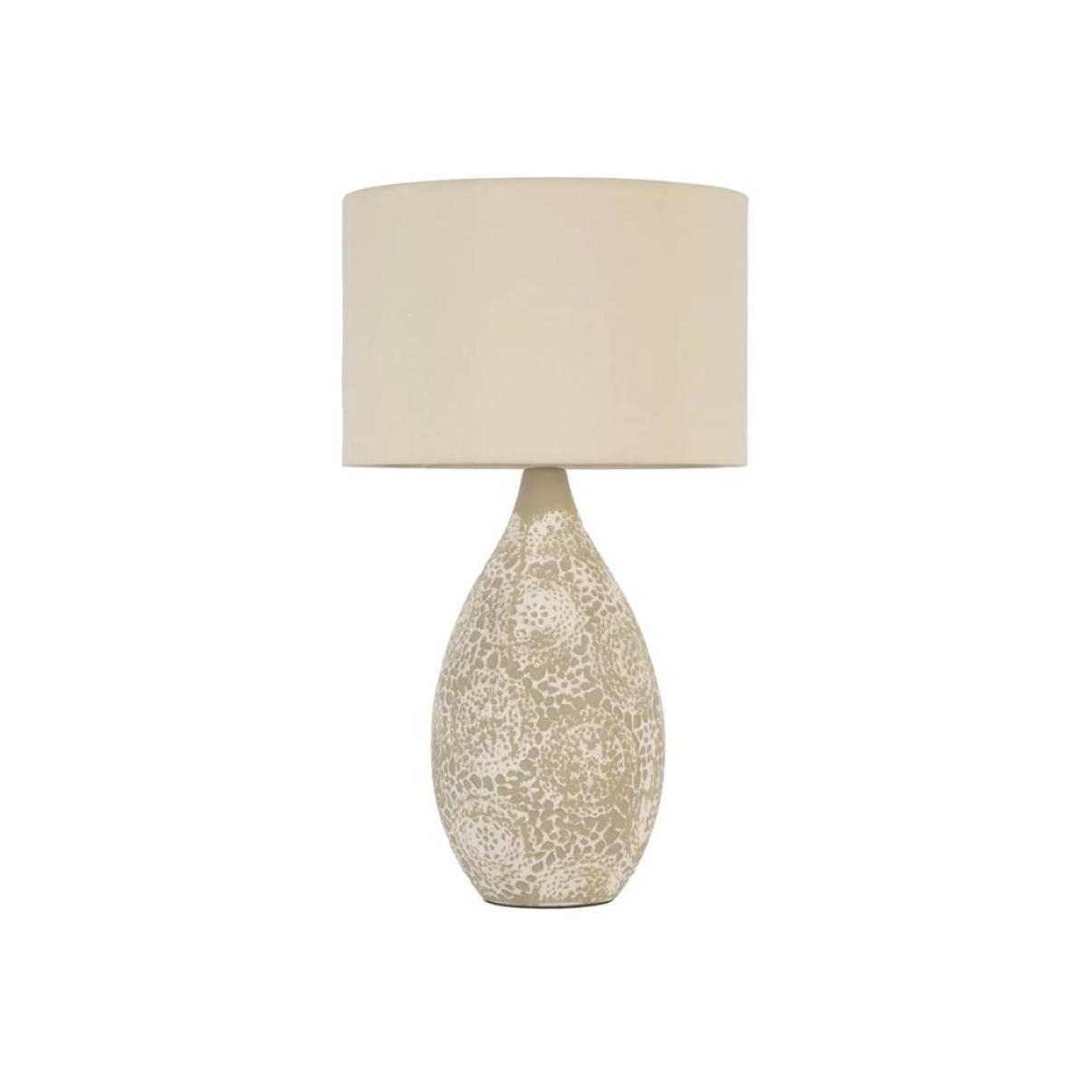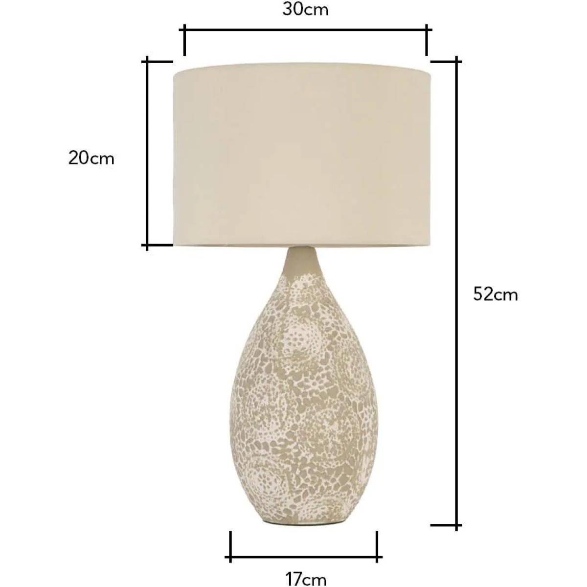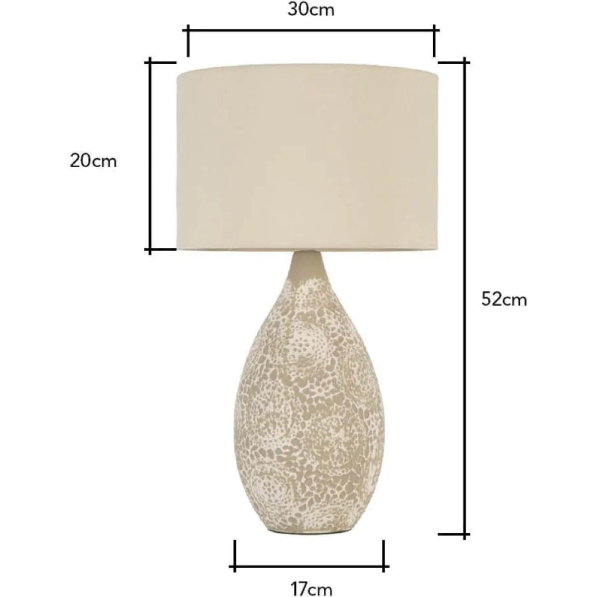Introduce an earthy elegance to your home with the BHS Inar 2-Tone Ceramic Table Lamp in Natural. This beautifully crafted table lamp features a two-tone ceramic base, blending natural tones for a warm, organic look that complements a variety of interior styles, from rustic to modern minimalist. The base combines a matte ceramic finish with a natural, earthy hue, adding texture and visual interest to your space. Topped with a neutral fabric shade, the Inar lamp provides a soft, ambient glow, creating a calm and inviting atmosphere in any room. Perfect for living rooms, bedrooms, or entryways, this lamp is a versatile and stylish addition to your décor. Number of lights: 1 Bulb type: 1 x E14 Small Edison Screw bulb required (not included) Max Wattage: 6 W (LED) Compatible with LED Shade Material: Fabric Base Material:Ceramic Some assembly is required Dimensions: Height: 52cm Diameter: 30cm Base Height: 40cm Base Diameter: 17cm Shade Height: 20cm Shade Diameter: 30cm All screens vary in colour reproduction and whilst every effort has been made to display the colour as accurately as possible it is for guidance only.