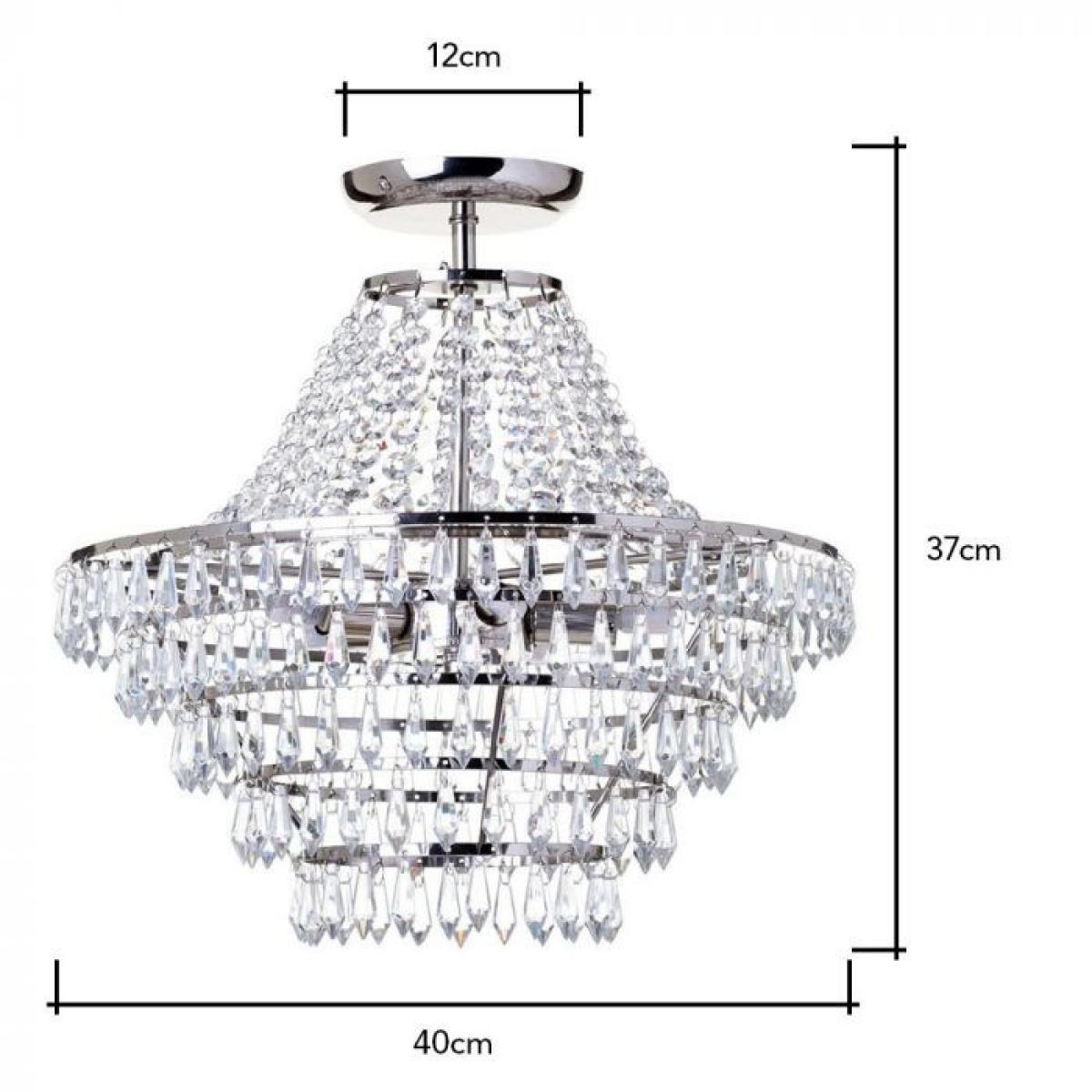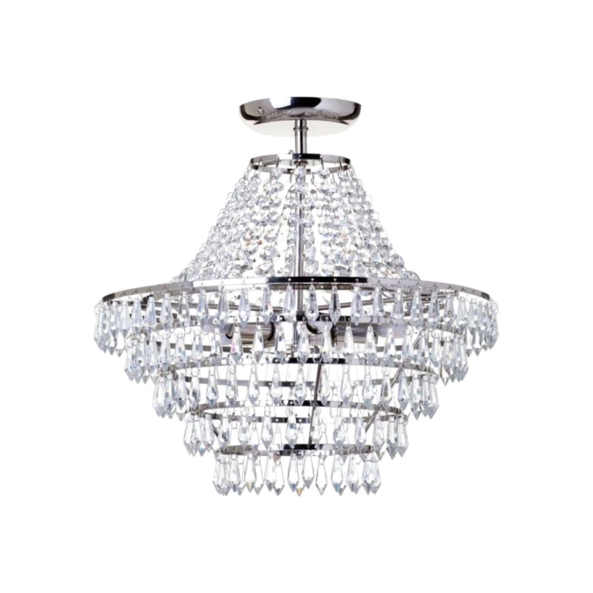 This small Ivy flush light gives a modern elegant look to any interior. Its flush fitting means it is great for low ceilings with a minimal drop height, giving great light without having to sacrifice style. The 5 tier chrome light looks great in modern interiors, with the crystal effect droplets offering a stunning sparkle and shimmer to any room. With its 5 light fitting you’ll get an effective spread of light across the space, perfect for any living room, dining room, or bedroom.