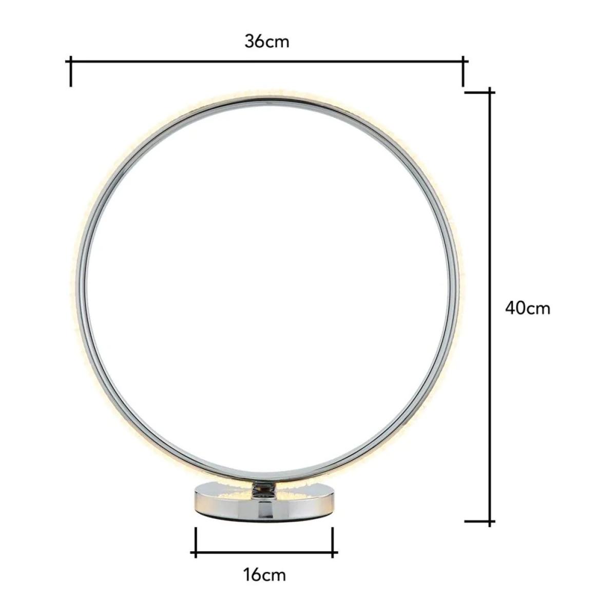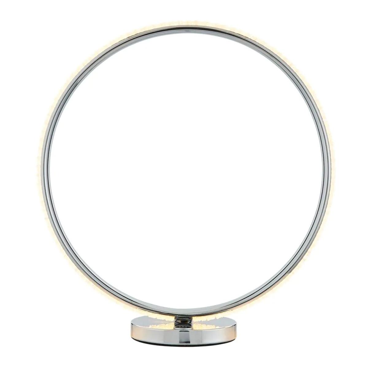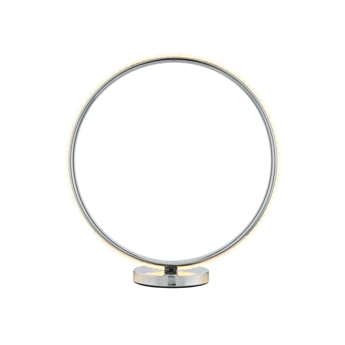 I love this ring table lamp for its sleek, modern aesthetic that adds a touch of sophistication to any space. Its chrome finish ensures it will blend seamlessly with contemporary decor, making it a versatile piece for living rooms, bedrooms, or even home offices. Stylistically, it works well paired with minimalist or industrial interiors but can also serve as an eye-catching accent in more eclectic settings. For practical styling tips, consider placing it on a bedside table or a sideboard, where its soft, indirect light can create a cosy ambience. Its simple yet striking design makes it easy to incorporate into various schemes, adding both function and contemporary flair to your interior.