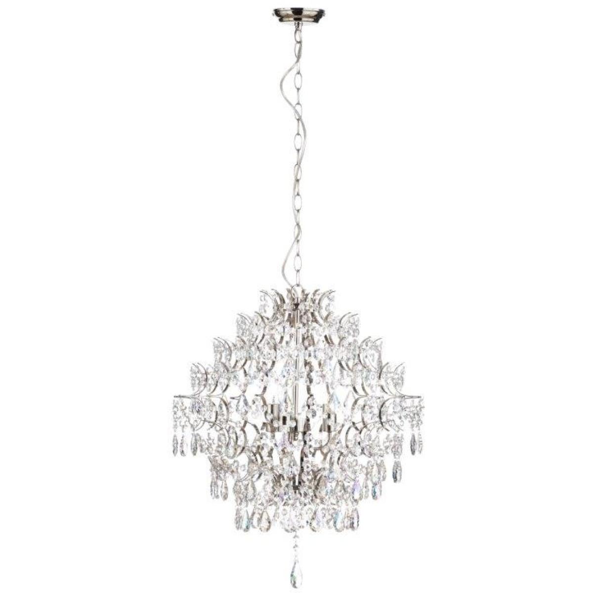 Transform your space with this stunning BHS Lisa 3 Light Pendant Ceiling Light, designed to be a striking centerpiece in any room. Surrounded by exquisite crystal effect droplets, this elegant light fixture beautifully reflects illumination throughout your space. Featuring a sleek satin nickel finish, the Lisa Light makes a bold statement whether it's hung in an entrance hall, living area, or above a dining table. Enhance your home décor with this sophisticated lighting solution that blends style and functionality seamlessly. 3 Lights requring E14 small edison screw bulb (bulbs not included) Max wattage 28 Watt Candle Bulb Compatible with LED Dimmable With Appropriate Switch & Bulb Assembly required. Dimensions Height 132cm Diameter 50cm Adjustable drop up to 132cm Weight 9.1kg To ensure safe transit glass and crystal glass droplets may be packed separately and require dressing before installation.