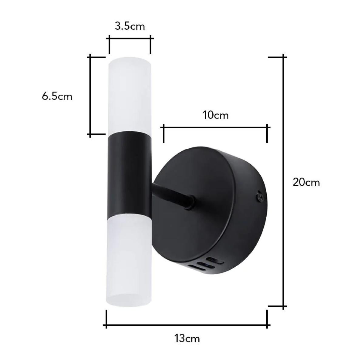 Give your home a modern update with the Lois Twin Frosted Wall Light from BHS. Featuring a sleek satin black finish, this stylish wall light adds a contemporary touch to any space. The frosted glass shades provide a beautiful contrast, gently diffusing the light to create a warm and inviting glow. Perfect for enhancing the ambience of your living space. Number of Lights 2 BulbsType Integrated LED Wattage 7 Watt Dimensions Height 20cm Width 10cm Shade Height 6.5cm Shade Diameter 3.5cm Projection 13.0 Wall Cap 3cm Weight 0.6kg All screens vary in colour reproduction and whilst every effort has been made to display the colour as accurately as possible it is for guidance only.