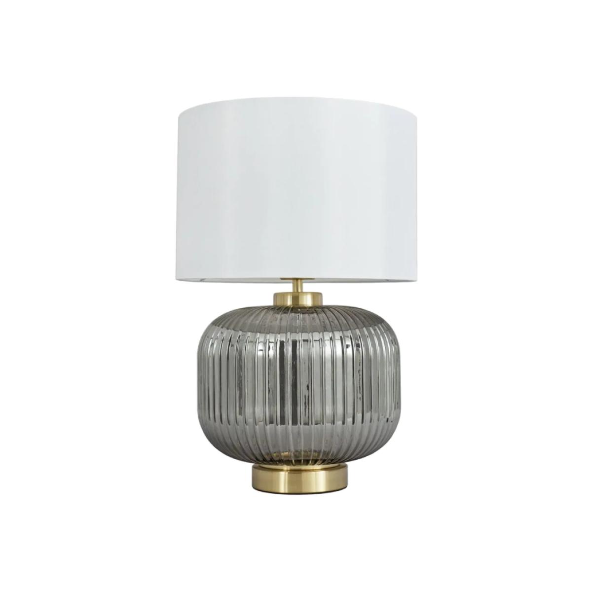 The Lyna Table Lamp with Smoked Glass Base and White Shade in Satin Brass from BHS is a striking addition to any room. The satin brass finish lends a modern touch to this art deco-inspired table lamp, while the white shade diffuses a bright, welcoming glow. Its elegant design makes it a perfect accent piece to elevate any space. Number of Lights 1 Bulb Type  E27 Max wattage 10 Watt (LED Only) Dimensions Height 40cm Diameter 30cm Weight 2.6kg All screens vary in colour reproduction and whilst every effort has been made to display the colour as accurately as possible it is for guidance only.