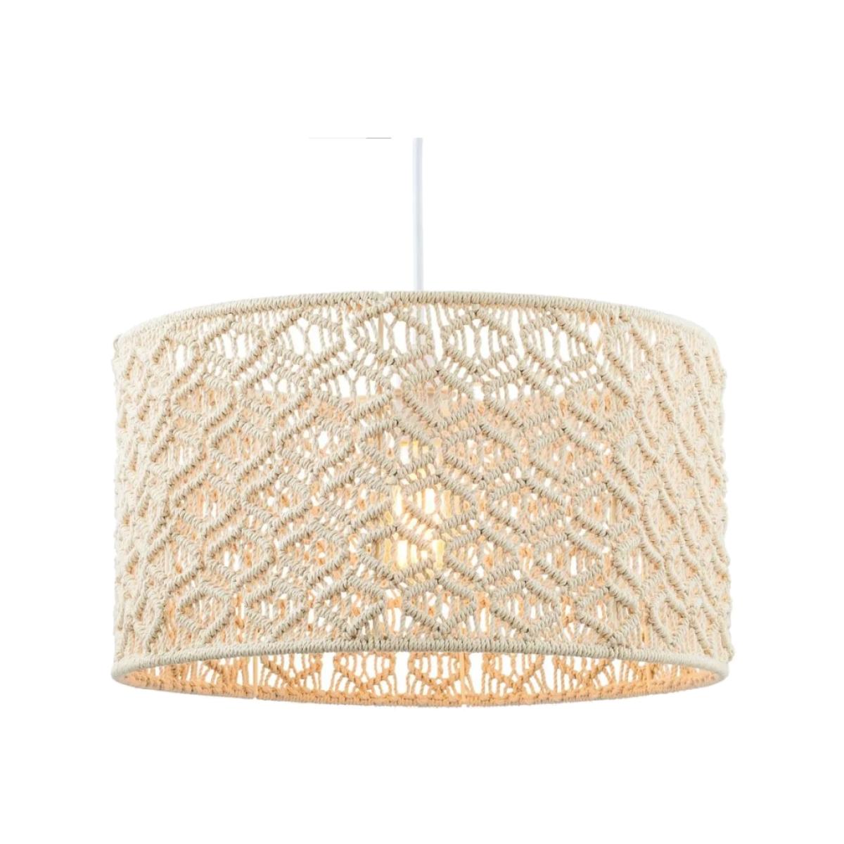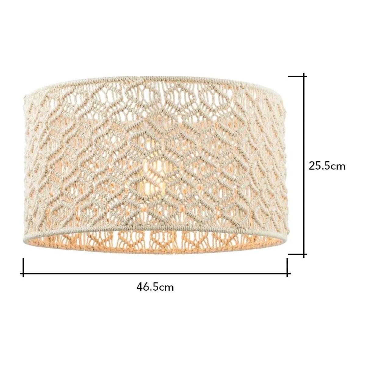 Introduce a touch of bohemian elegance to your home with the BHS Macrame Easy Fit Large Light Shade in Ivory. This stunning 47cm light shade showcases an intricate macrame design that beautifully combines craftsmanship and style, making it a striking focal point in any room. The soft ivory colour adds warmth and sophistication, seamlessly blending with various interior aesthetics, from modern to rustic. Designed for effortless installation, this easy-fit shade can be quickly attached to your existing light fixture without the need for any electrical work. When illuminated, the macrame design casts a soft, ambient light, creating a relaxed and inviting atmosphere perfect for living rooms, bedrooms, or dining areas. Shade Material: Fabric Colour: Ivory Height: 25.5cm Diameter: 47cm All screens vary in colour reproduction and whilst every effort has been made to display the colour as accurately as possible it is for guidance only.