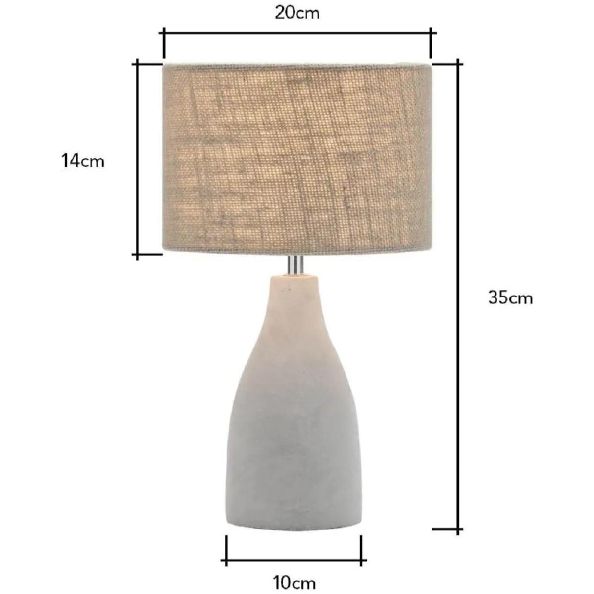 The BHS Marcus Mini Table Lamp in Concrete offers a chic, industrial touch in a compact design, perfect for adding modern style to any small space. Featuring a minimalist concrete base, this mini lamp embraces urban-inspired aesthetics with a sturdy, matte finish, making it ideal for contemporary or industrial-themed interiors. Its understated design adds texture and character, while its compact size allows for versatile placement on bedside tables, shelves, or desks. Finished with a sleek fabric shade, the Marcus Mini Lamp provides soft, ambient lighting, creating a cosy and inviting atmosphere in any room. Number of lights: 1 Bulb type: 1 x E14 Small Edison Screw bulb required (not included) Max Wattage: 6 W (LED) Compatible with LED Shade Material: Fabric Base Material: Concrete Some assembly is required Dimensions: Height: 35cm Diameter: 20cm Base Diameter: 10cm Shade Height: 14cm Shade Diameter: 20cm All screens vary in colour reproduction and whilst every effort has been made to display the colour as accurately as possible it is for guidance only.
