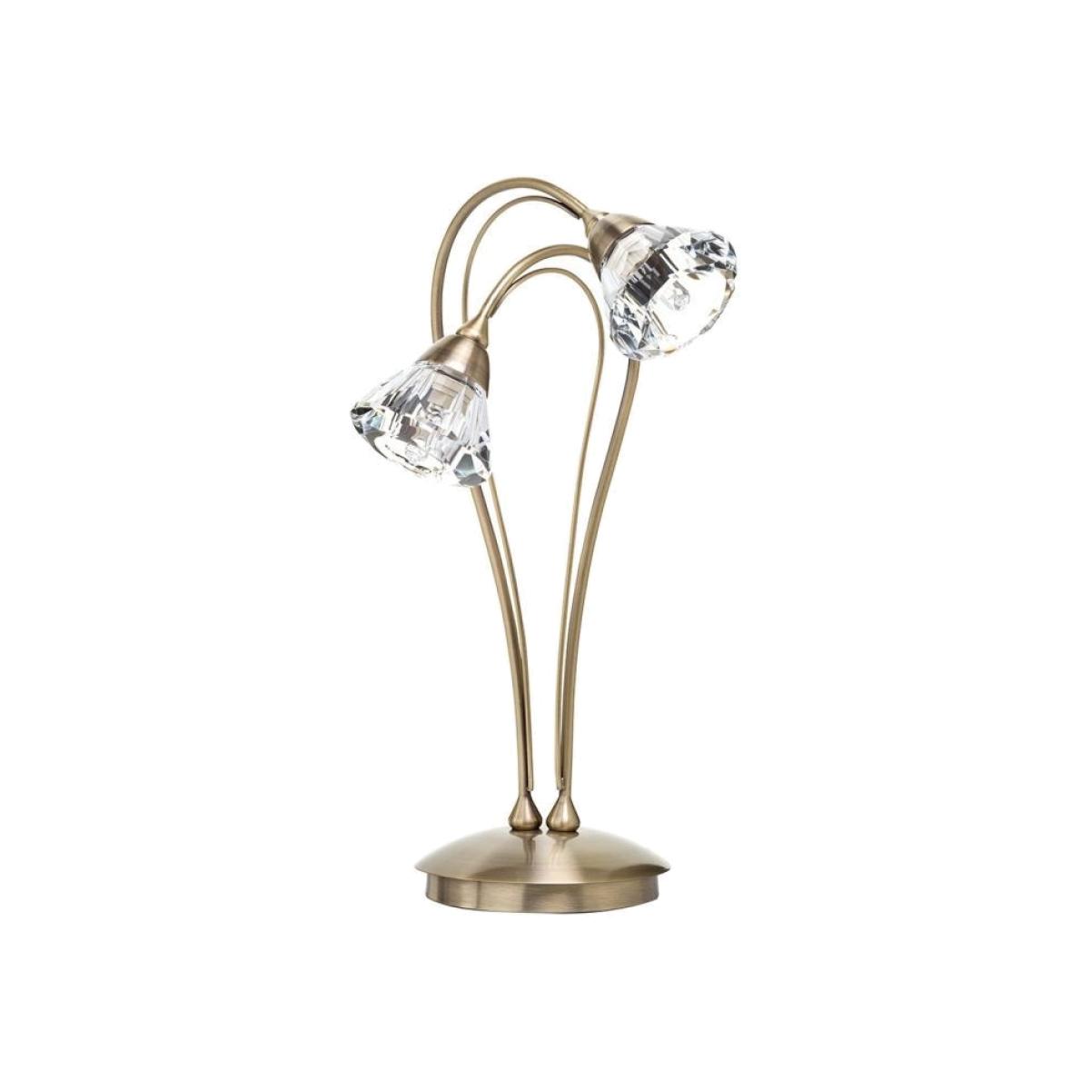 The Marianne Table light is a sophisticated lamp offering both style and elegance. Its 2 light design offers a soft, warm glow to the surrounding space, helping you unwind and relax. The curved arms reveal 2 faceted glass heads, which diffuse the light to give a soothing tone to your room. Its antique brass finish, gives this lamp a classic yet stylish twist. Weight (kg) 2.4 Number of Lights 2 Lights Bulbs Required 2 Bulbs Included No Cap Type G9 Compatible with LED Yes Height CM: 38 Width CM: 21 Shade Diameter CM: 8.0 Base Diameter CM: 13.5 Shade Material Glass Voltage 240V Material Metal