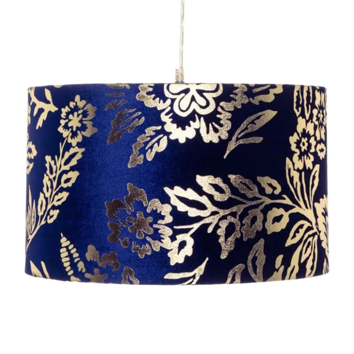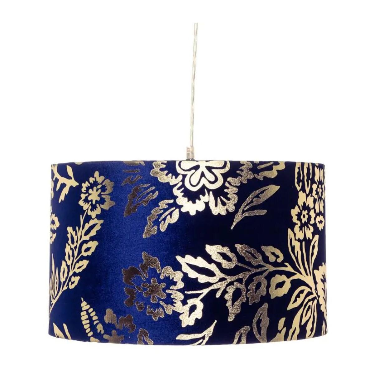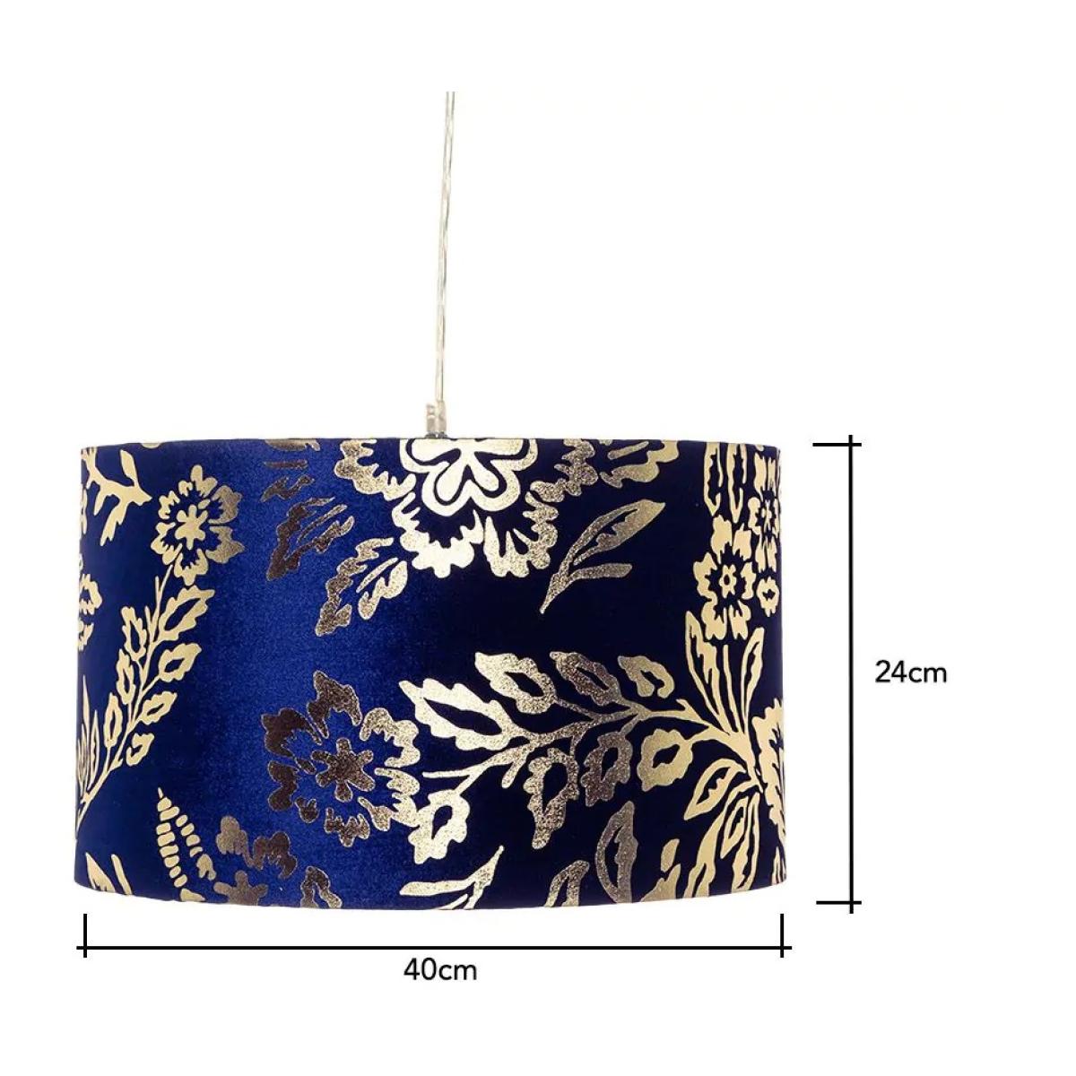Elevate your interior with the BHS Mica Velvet Easy Fit Light Shade in Navy and Gold. This exquisite 40cm light shade combines the sumptuous texture of deep navy velvet with stunning gold accents, creating a striking focal point that adds a touch of luxury to any room. Perfect for living rooms, bedrooms, or dining areas, this shade effortlessly enhances both contemporary and traditional décor. Designed for hassle-free installation, the easy-fit design allows you to attach the shade to your existing light fixture without any electrical work. When illuminated, the rich navy velvet beautifully diffuses light, while the gold detailing adds a warm, inviting glow, making your space feel both sophisticated and welcoming. Shade Material: Fabric - Velvet Colour: Navy/Gold Height: 24cm Diameter: 40cm All screens vary in colour reproduction and whilst every effort has been made to display the colour as accurately as possible it is for guidance only.