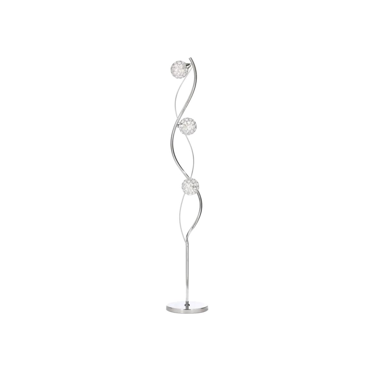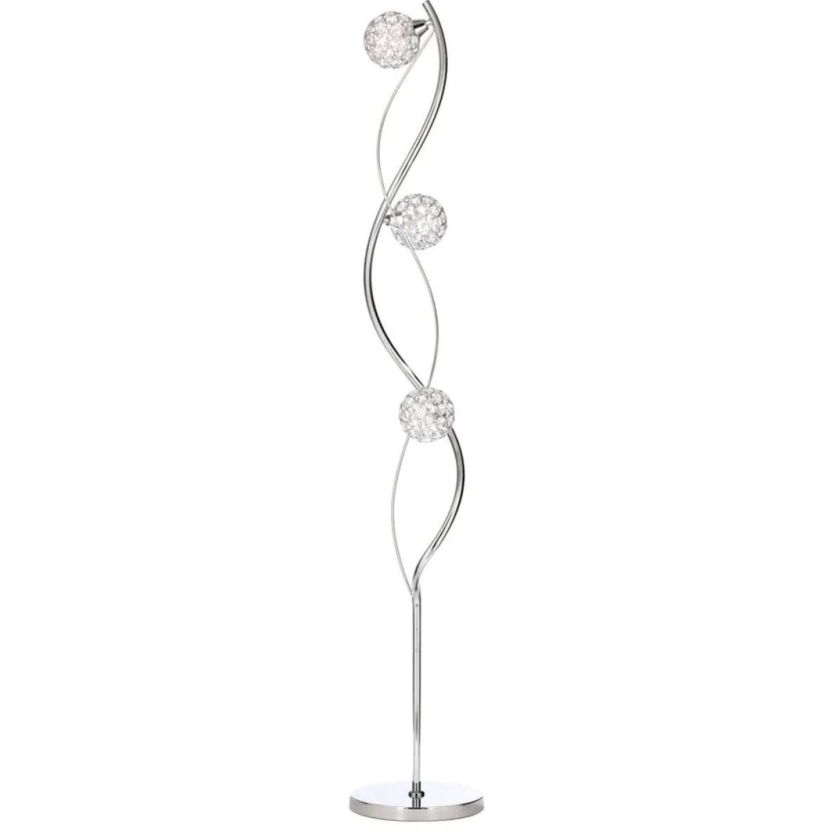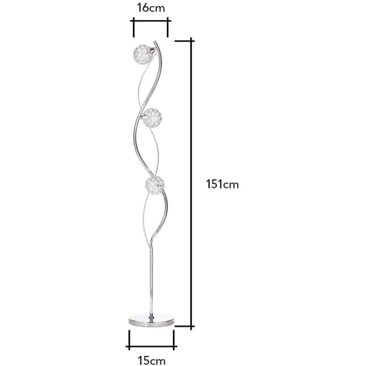 Introducing the beautifully elegant Orianna floor lamp from BHS. Its chrome-finished arms curl gracefully from the base, forming a mesmerising spiral design. Three spherical shades sit at the ends of these arms, each adorned with crystal-effect detailing that casts a stunning light pattern onto the walls. Perfect for creating a warm, ambient glow, this floor lamp is an ideal statement piece for bedrooms and living rooms. Number of Lights 3 BulbsType G9  Max wattage 3 Watt (LED Only Inline Switch Dimensions Height 151cm Width 16cm Shade Height 11cm Shade Diameter 11cm Base Diameter 5cm Weight 7kg All screens vary in colour reproduction and whilst every effort has been made to display the colour as accurately as possible it is for guidance only.