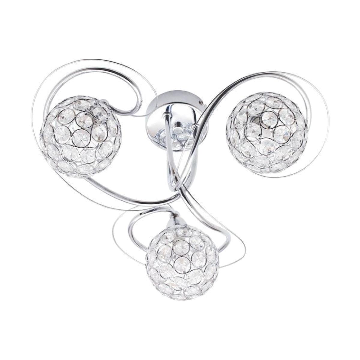 Why not combine style and practicality in your home with the Orinna flush ceiling light. The fittings having a minimal drop to help you illuminate spaces with lower ceilings, whilst the crystal effect shades give an elegant twist to your design. This flush ceiling light has a 3 light structure, with each light presented at the end of a stylish curved arm and surrounded by a contemporary ball shaped shade to give a unique glisten to the light. Weight (kg) 2.3 Number of Lights 3 Lights Bulbs Required 3 Bulbs Included No Cap Type G9 Max wattage 28 Watt Compatible with LED Yes Height CM: 31 Width CM: 41 Shade Height CM: 11.0 Shade Diameter CM: 11.0 Shade Material Glass Bulb Shape Capsule Voltage 220V - 240V Material Glass, Metal