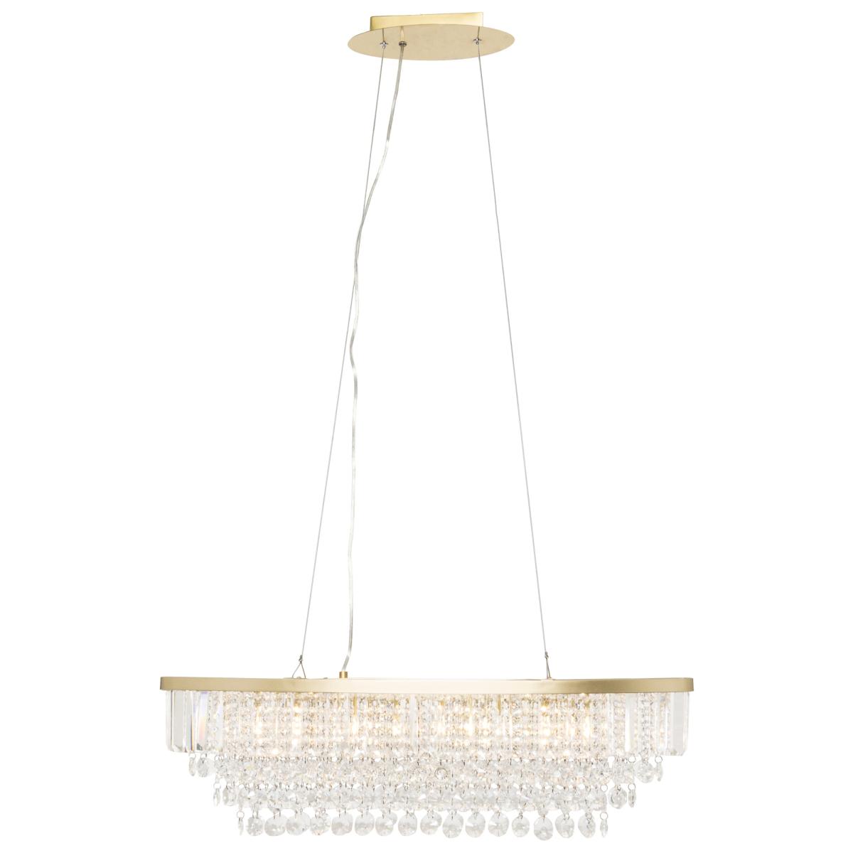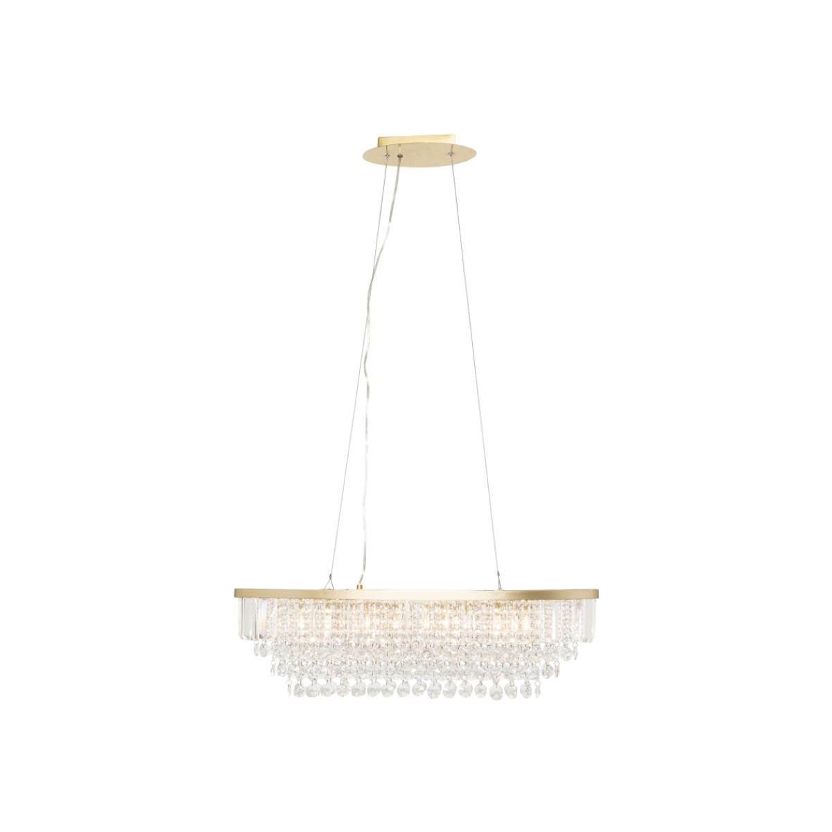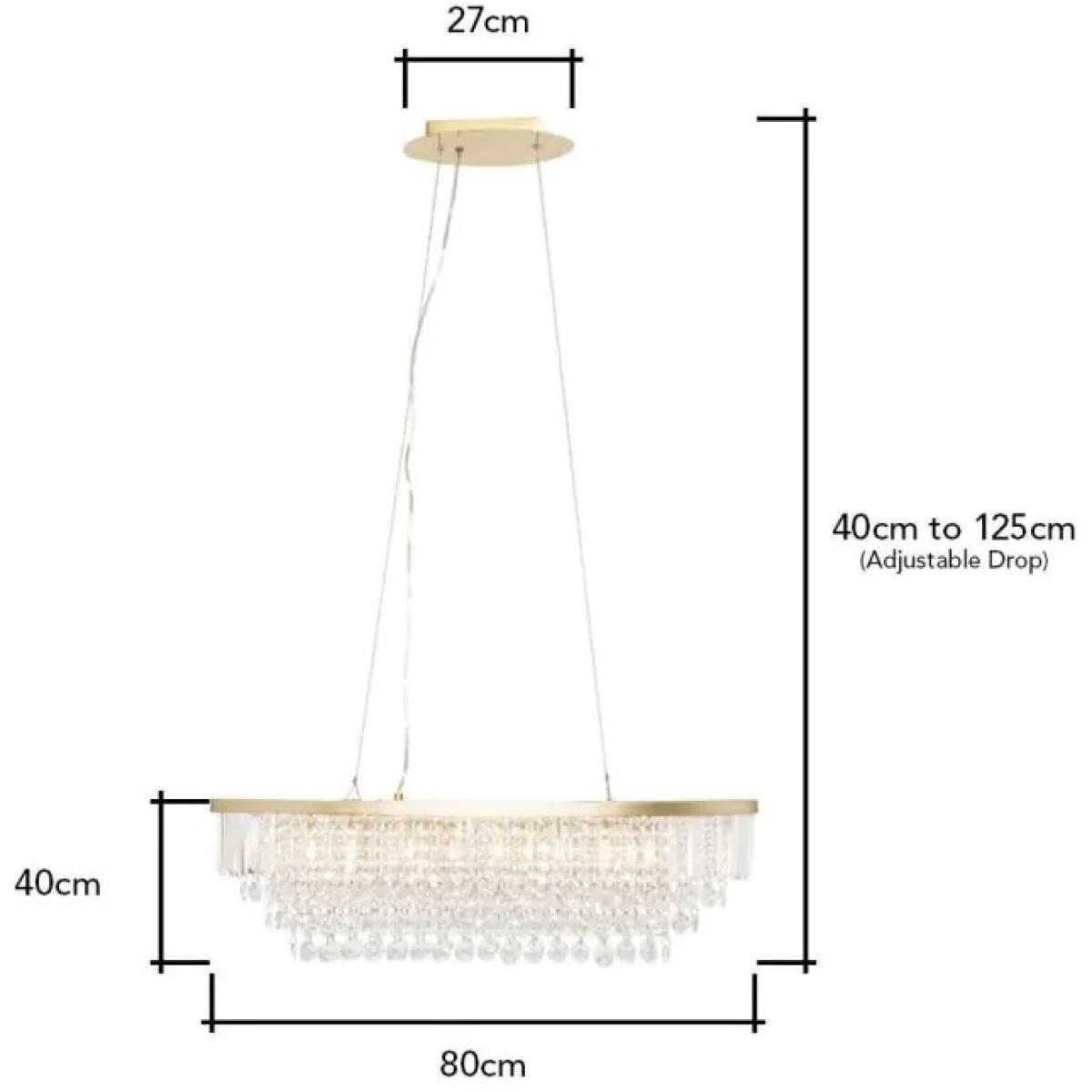 The elegant BHS Paladina Diner Pendant Ceiling Light features a stunning array of crystal-effect glass droplets that shimmer and reflect light, creating a captivating centerpiece in any room. Its adjustable height allows for versatile placement, making it especially striking when hung over a dining table or kitchen island. A perfect blend of sophistication and functionality, this pendant light adds a touch of luxury to your home. 4 lights requiring G9 bulbs (not included) Compatible with LED Max wattage    3 Watt (LED Only) Assembly required. Dimensions Height 40cm Length 80cm Width 20cm Adjustable drop between 42cm - 124cm Ceiling Cap 27cm Weight 7.4kg To ensure safe transit glass and crystal glass droplets may be packed separately and require dressing before installation.