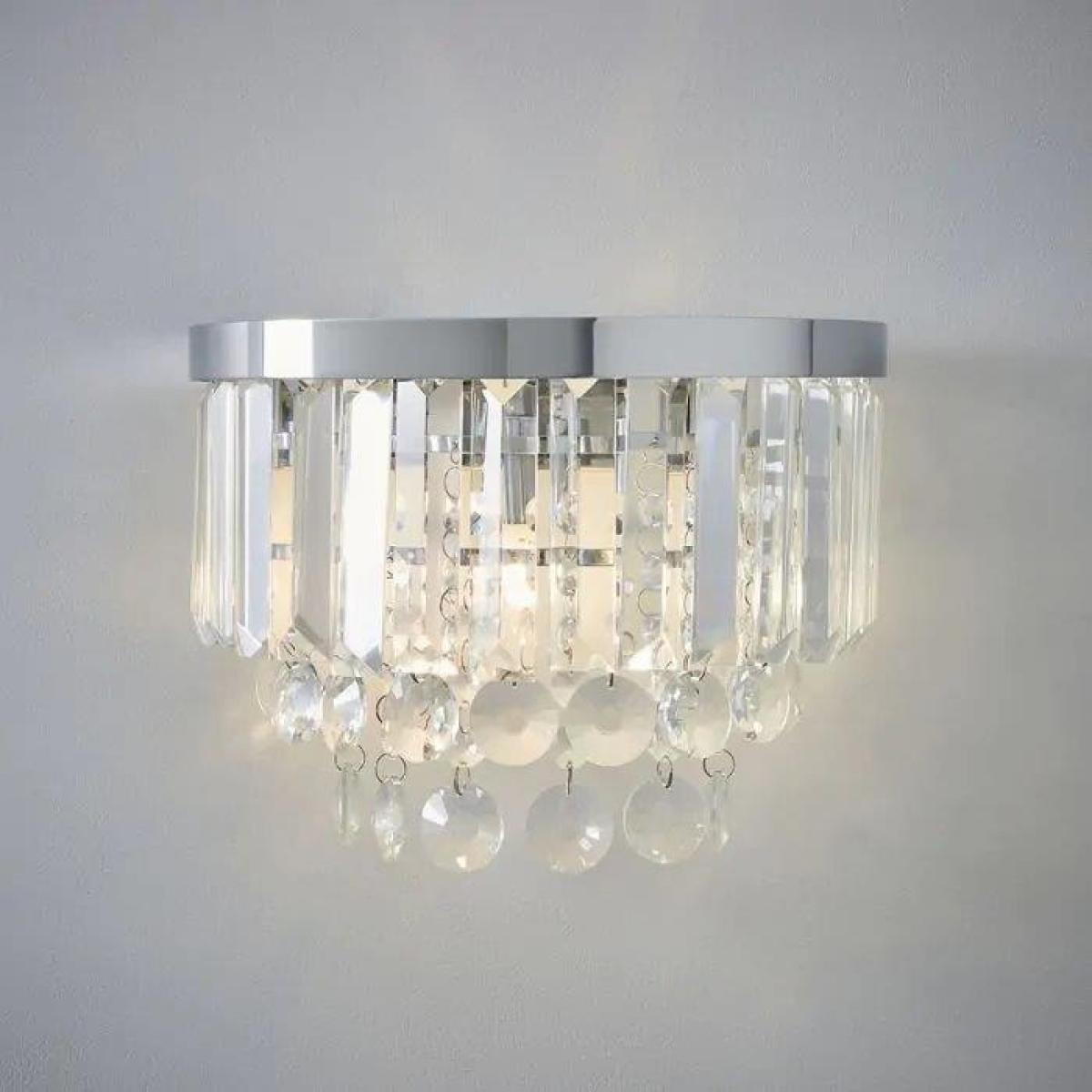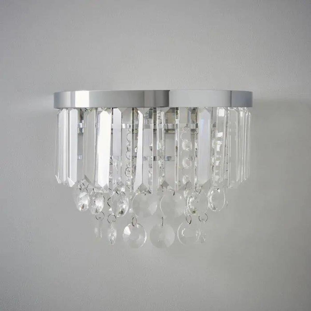 This wall light is a stunning addition that works well in both contemporary and glamour-inspired interiors. I love how its chrome finish and clear crystals bring a touch of sophistication and sparkle, making it perfect for bedrooms, hallways, or even bathrooms with a luxe vibe. When styling, consider placing it alongside minimalist or neutral decor to let the light shine and the crystals truly stand out. For an impactful look, try pairing it with other chrome fixtures or glass accents, and position it at eye level or slightly above to maximise the reflective effect and create a warm, inviting glow.