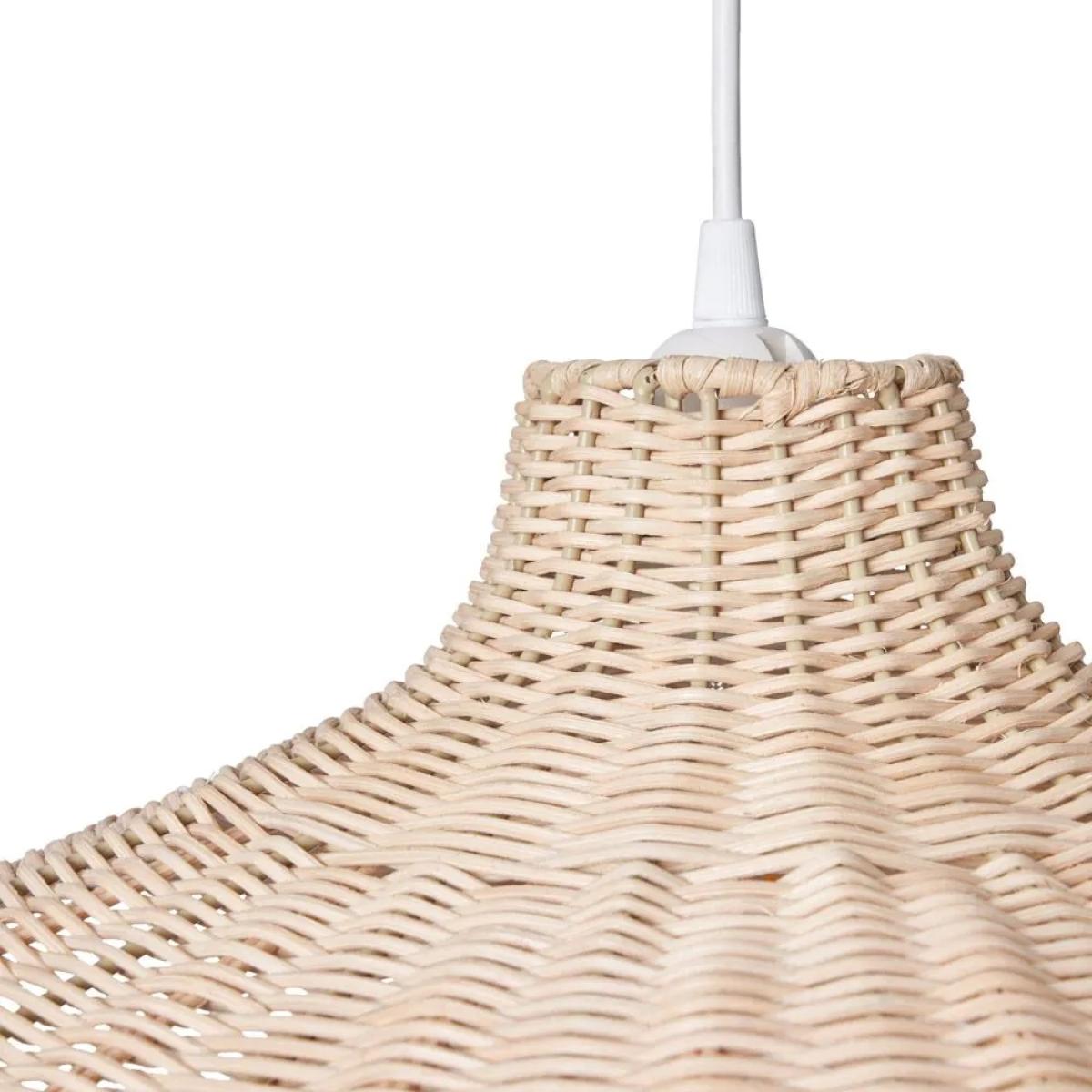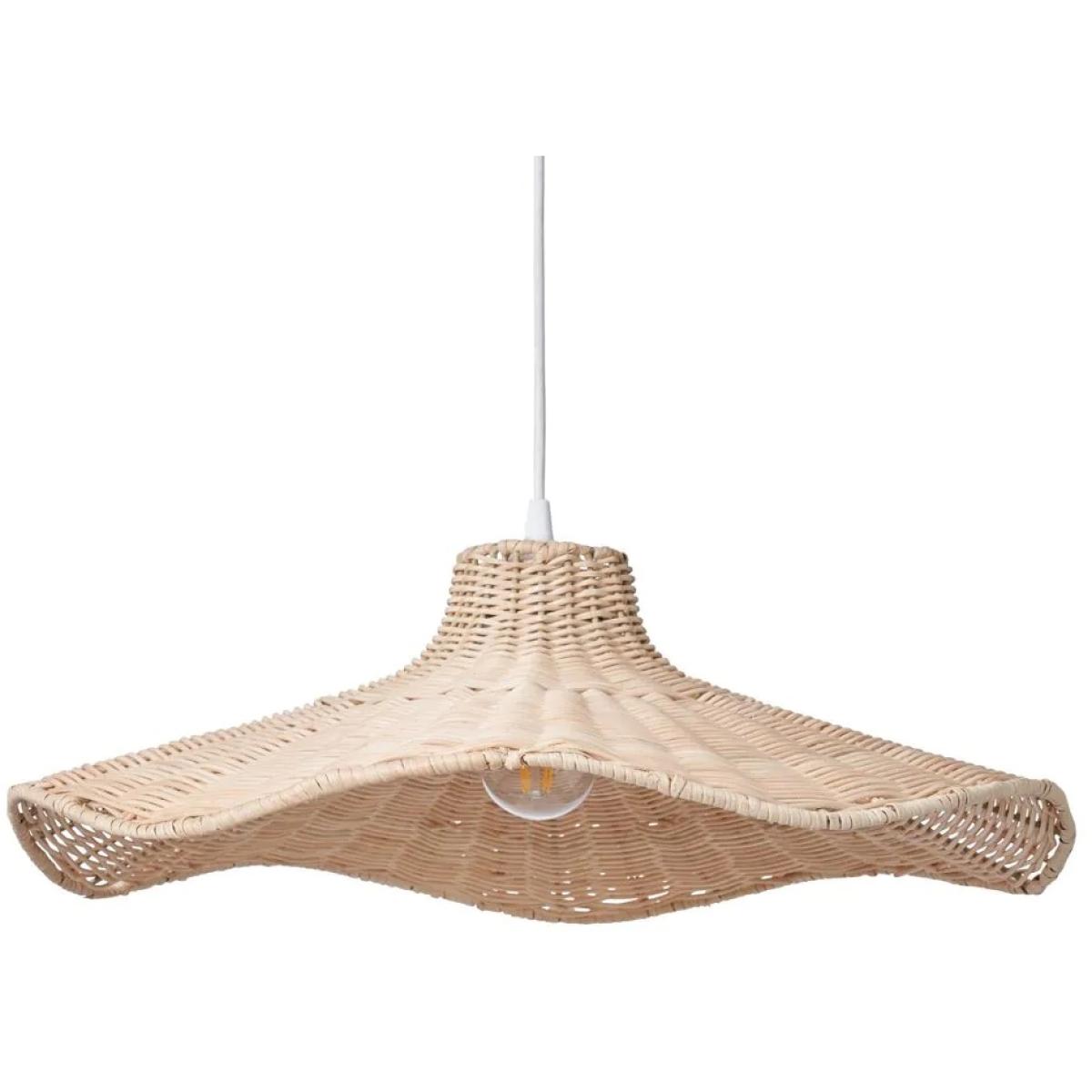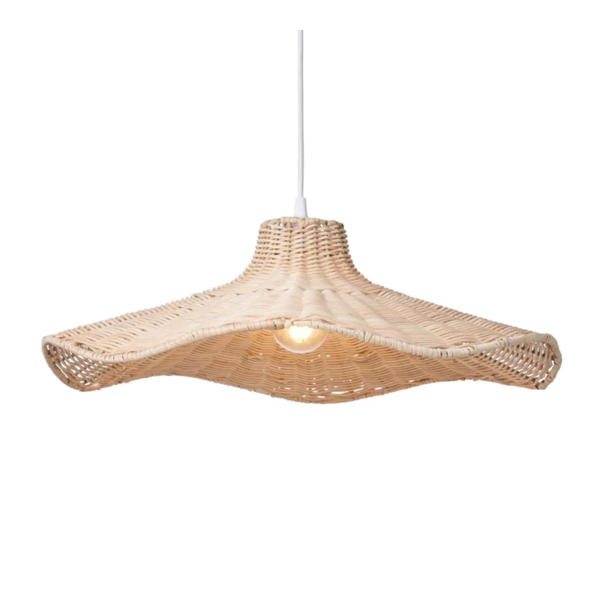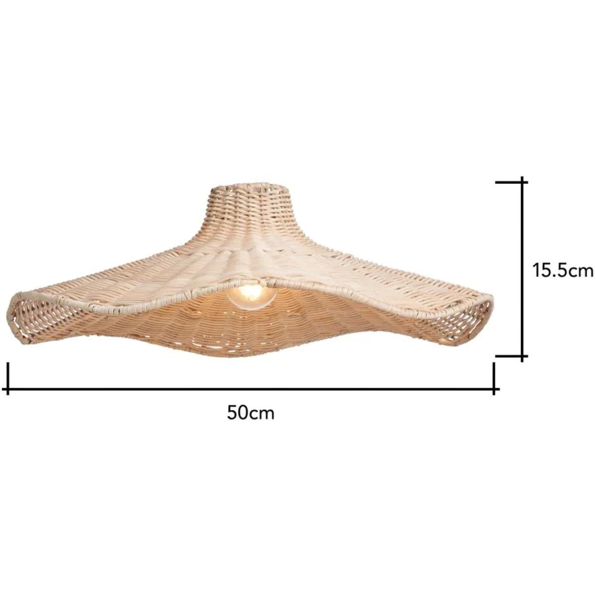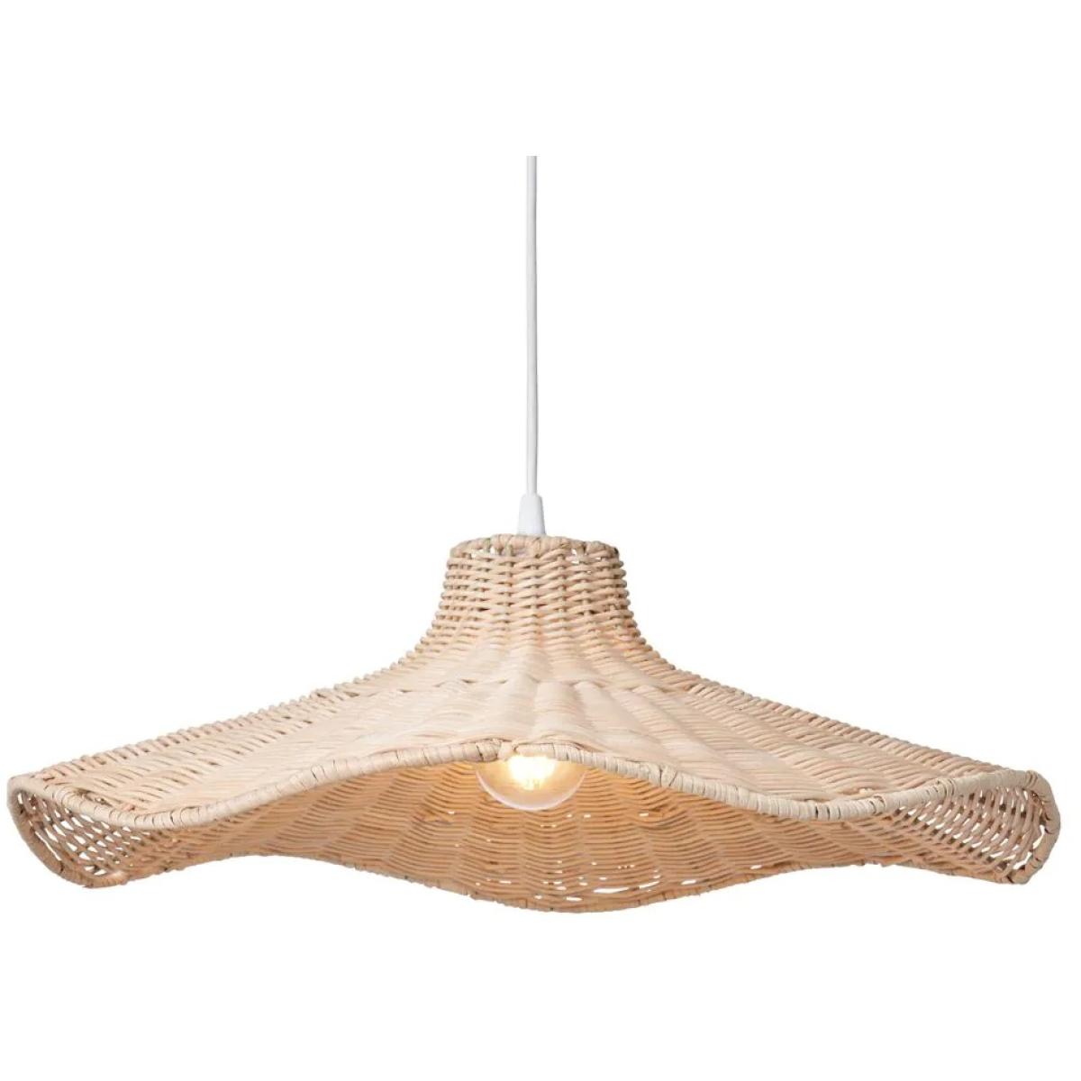 The BHS Percy Wavy Rattan Easyfit Light Shade in Natural brings a touch of organic elegance to your lighting scheme. Crafted from handwoven rattan, this 50cm shade features a unique wave-like design that adds texture and warmth to any room. It's easyfit design allows for quick installation over your existing pendant fitting, making it a convenient choice for updating your space. Ideal for creating a relaxed, bohemian atmosphere, the Percy shade is perfect for living rooms, bedrooms, or dining areas. Its natural hue complements a variety of décor styles, adding both charm and functionality to your home. Shade Material: Rattan Compatible with LED Colour: Natural Cap Type: Fits over Existing Fixture Some Assembly Required Dimensions: Height: 15.5cm Diameter: 50cm Weight: 0.7kg All screens vary in colour reproduction and whilst every effort has been made to display the colour as accurately as possible it is for guidance only.