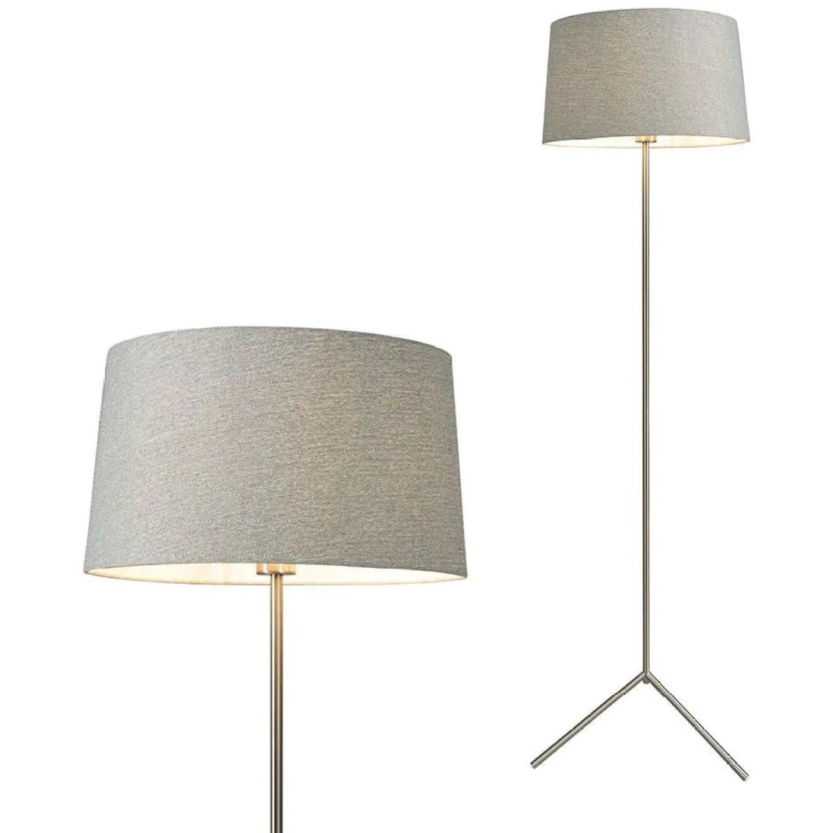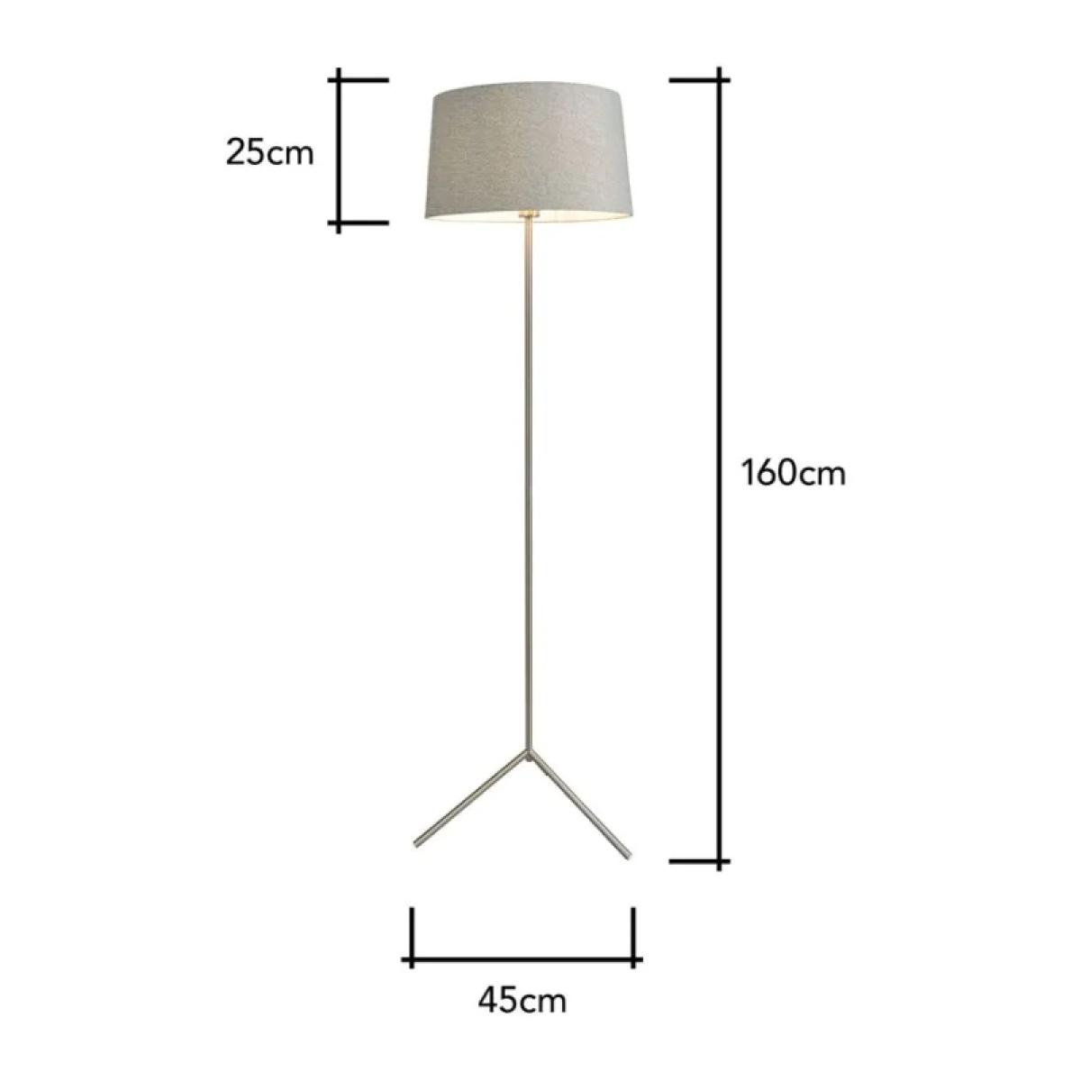 Bring modern sophistication to your home with the BHS Stassy Floor Lamp in Nickel and Grey. This elegant lamp combines a sleek nickel finish with a refined grey shade, creating a stylish piece that enhances any interior. With its contemporary aesthetic, the Stassy Floor Lamp is ideal for living rooms, bedrooms, or home offices, adding both function and flair to your space. The grey fabric shade diffuses light beautifully, casting a warm glow that creates a relaxing ambiance. Its minimalist design and quality materials make it versatile, blending effortlessly with modern and transitional styles. The sturdy nickel base ensures stability, adding both style and durability to this chic lighting solution. Number of lights: 1 Bulb type: 1 x E27 Edison Screw bulb required (not included) Compatible with LED Max Wattage: 10 W Shade Material: Fabric Base Material: Metal Some assembly required Dimensions: Height: 160cm Diameter: 45cm Shade Height: 25cm Shade Diameter: 45cm Base Diameter: 45cm All screens vary in colour reproduction and whilst every effort has been made to display the colour as accurately as possible it is for guidance only.